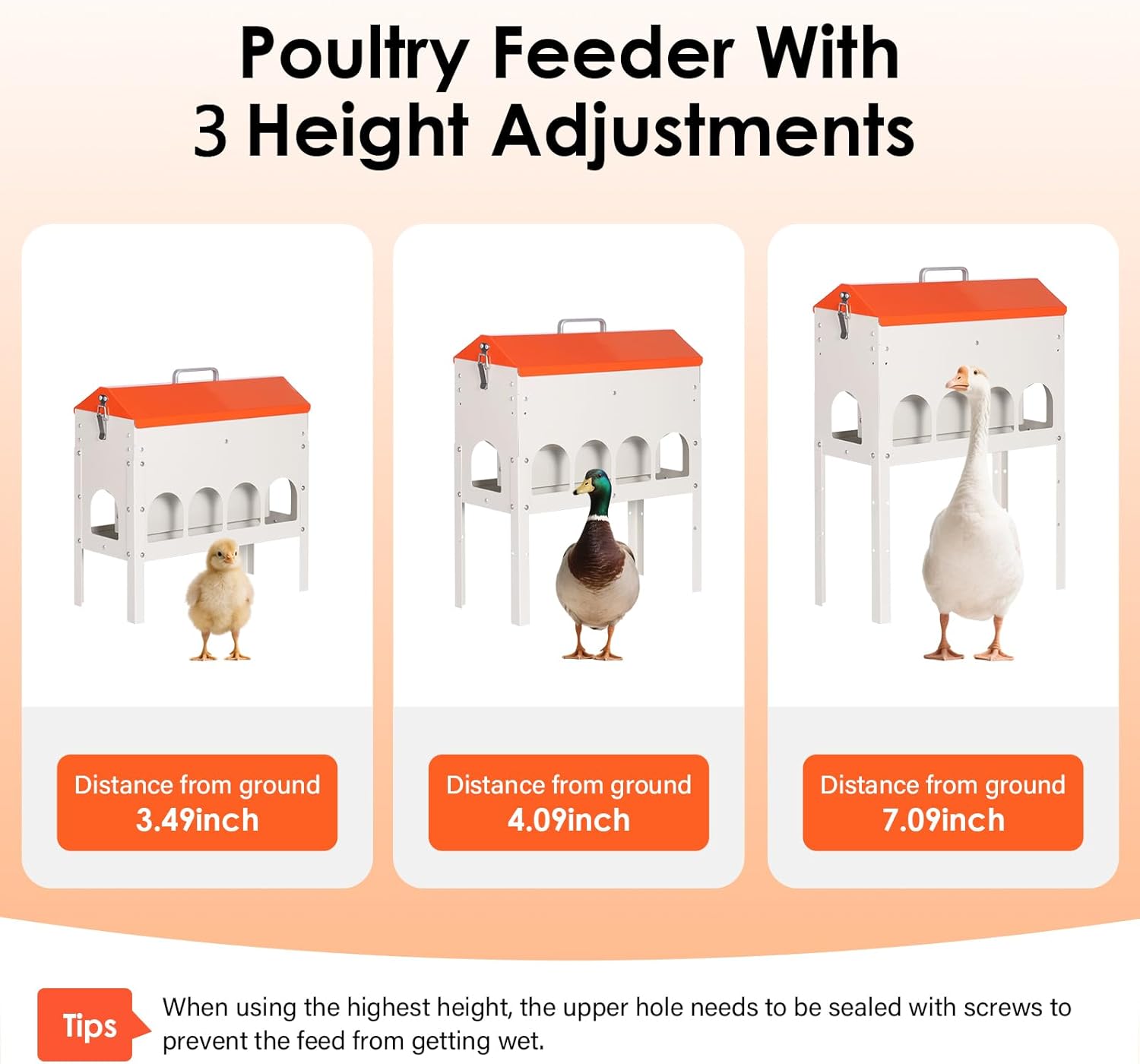 Adjustable Legs: Our chicken feeders though comes with three adjustable legs. You can set the height of the feeding box according to your needs