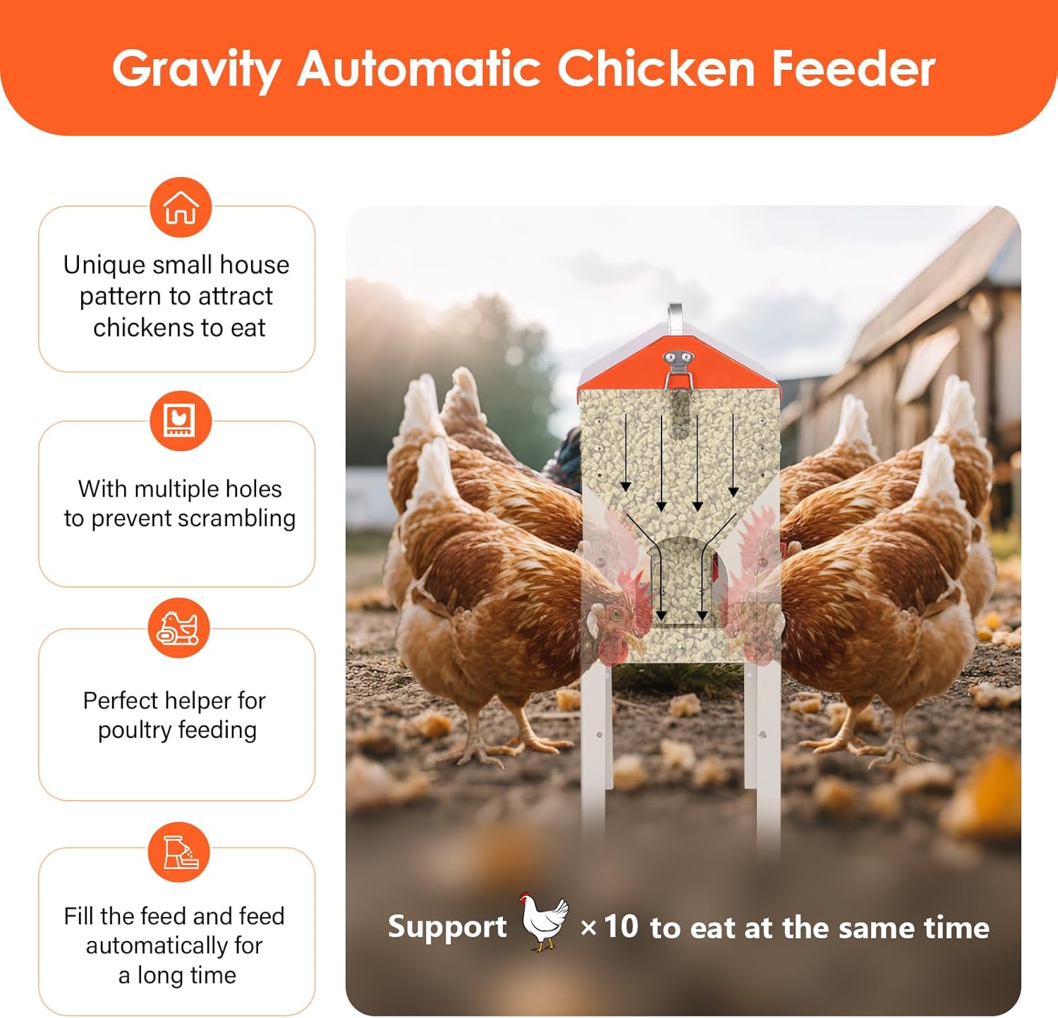 Wide Application: The large chicken feeder gravity with scoop set help with better feeding, suitable for chicken farms and small poultry households, can be applied to the chicken coop, outdoor, farm ranch, yard