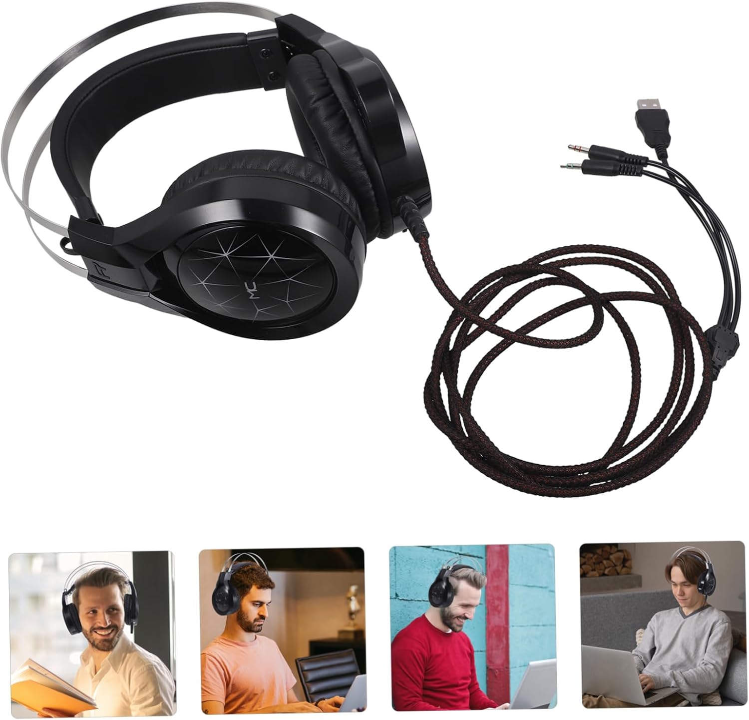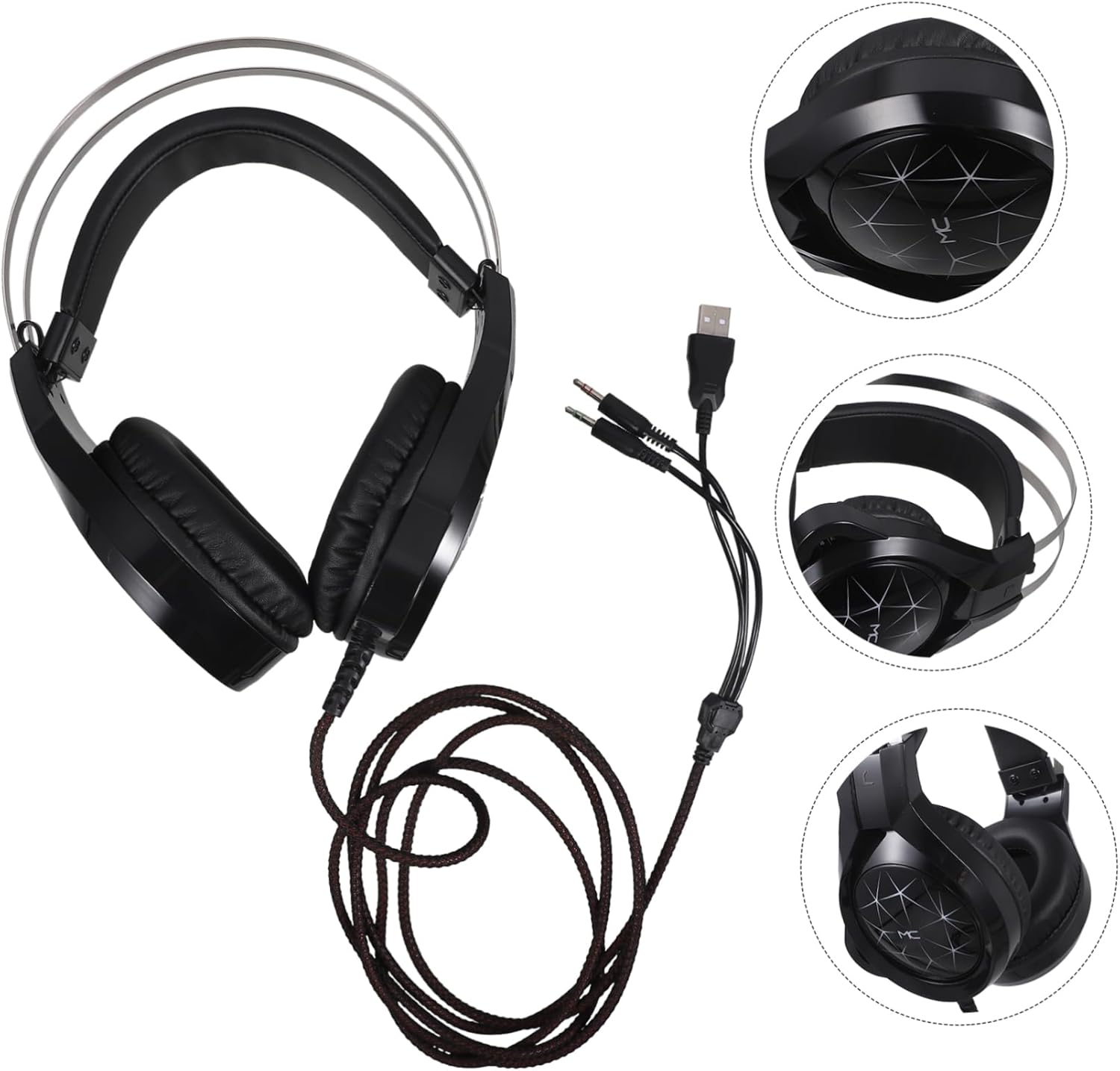 Head-mounted Headphone Glaring lights are designed on the ear cups, highlighting the atmosphere of the game.Gaming Earpiece This head-mounted game headset is great for playing games.Wired Headset It makes you comfortable and feel nothing on your head, just completely into the gaming world