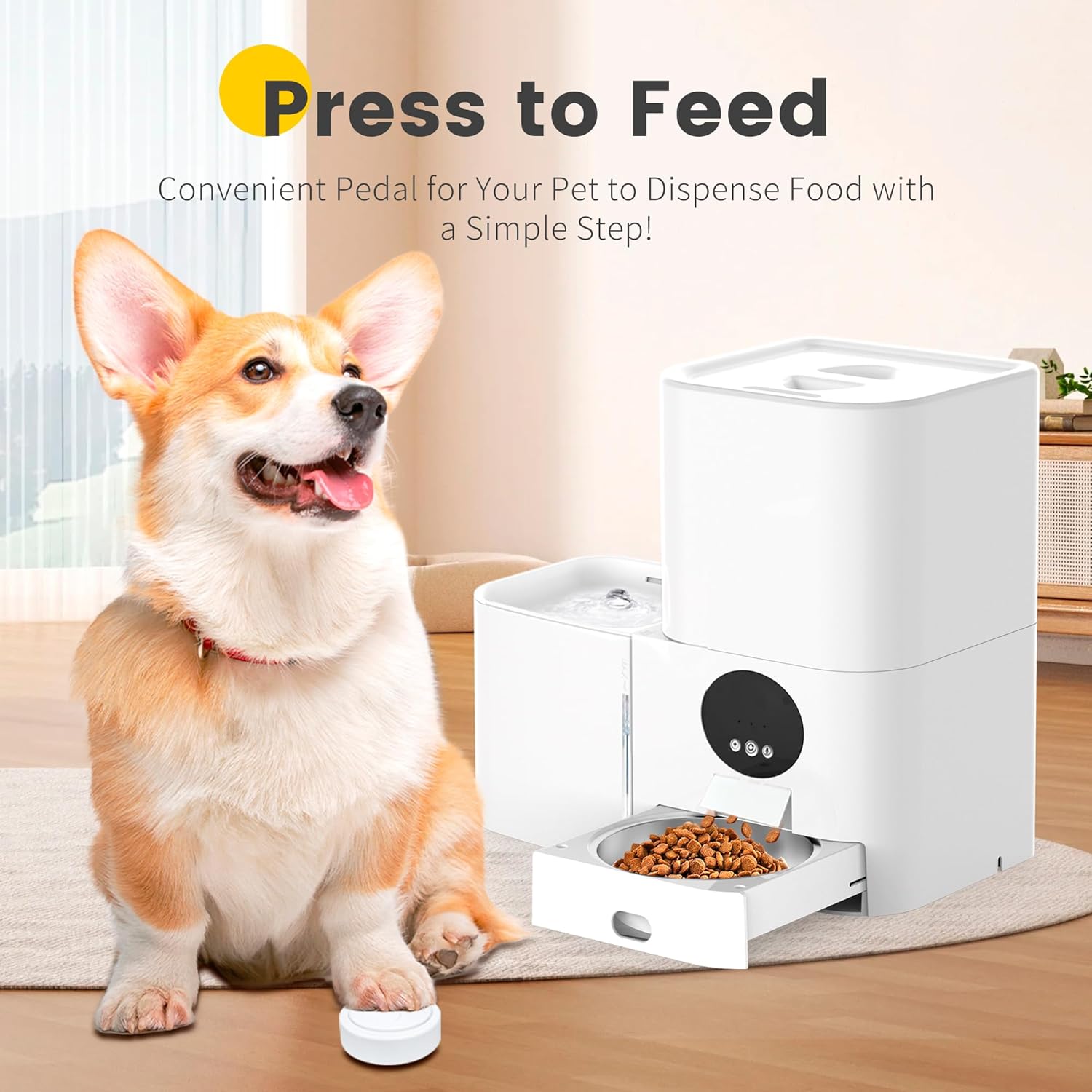 Tap to dispense 1 fixed portion (½ cup) – no app needed! Ideal for older pets or tech-newbies.