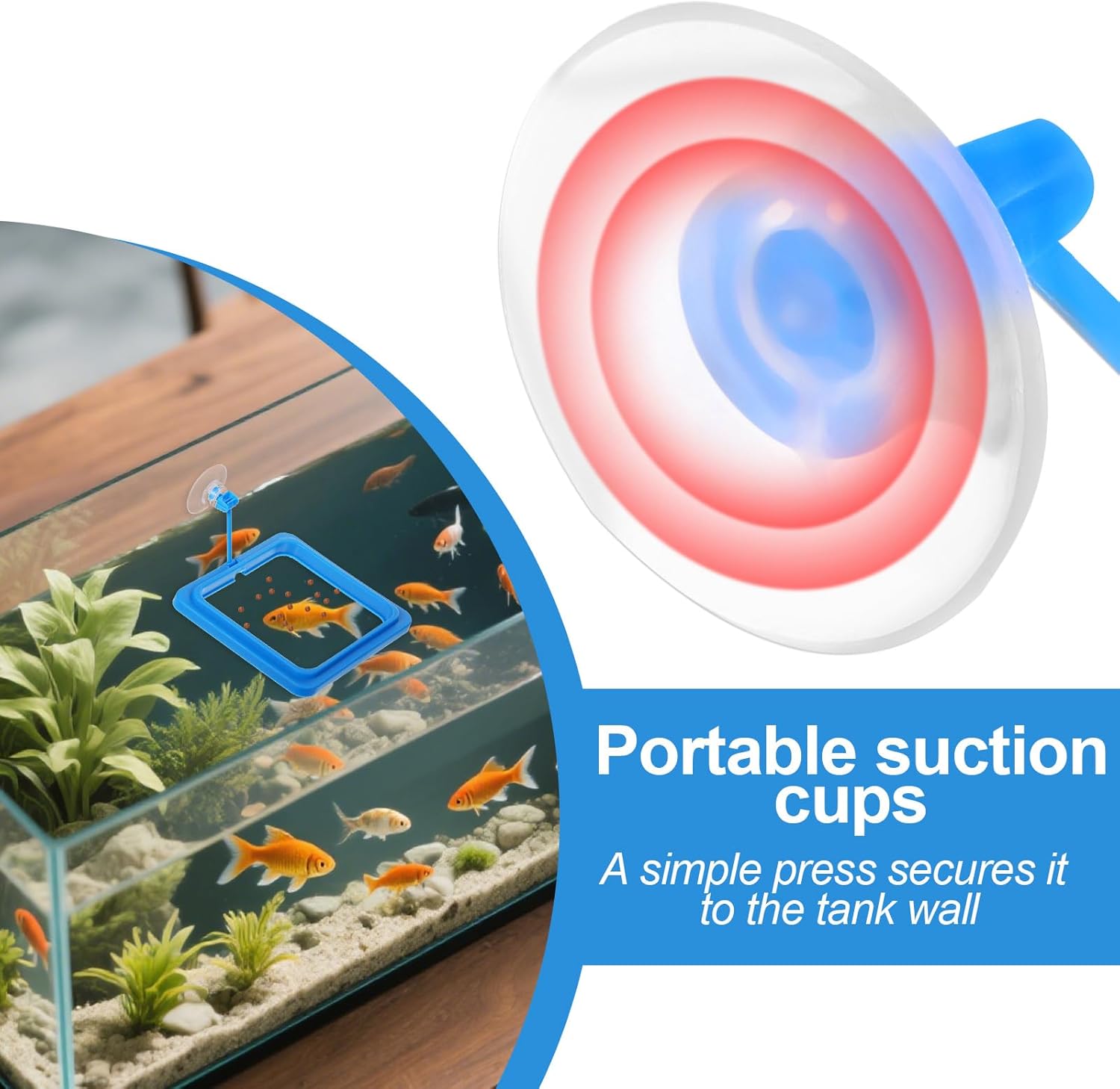 Quick and Flexible Installation: Easily install the feeding rings with the attached suction cups, requiring no extra tools. The adjustable connecting rod allows the rings to float with water level changes, making them suitable for most aquariums and ensuring hassle-free use.
