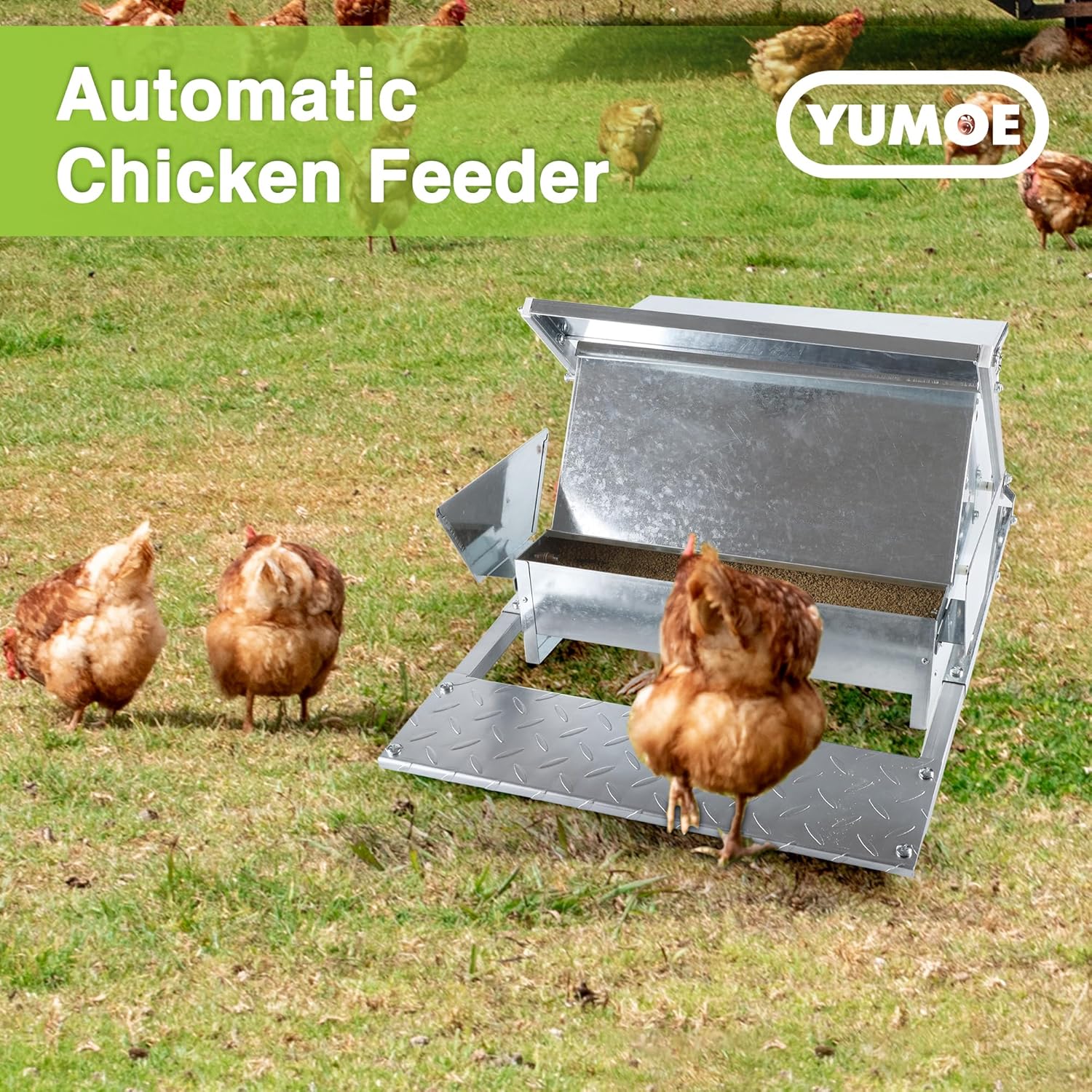 🐓 Note that YUMOE automatic chicken feeder is both rat-proof and weather-proof. Reducing waste and saving you money in the long run.