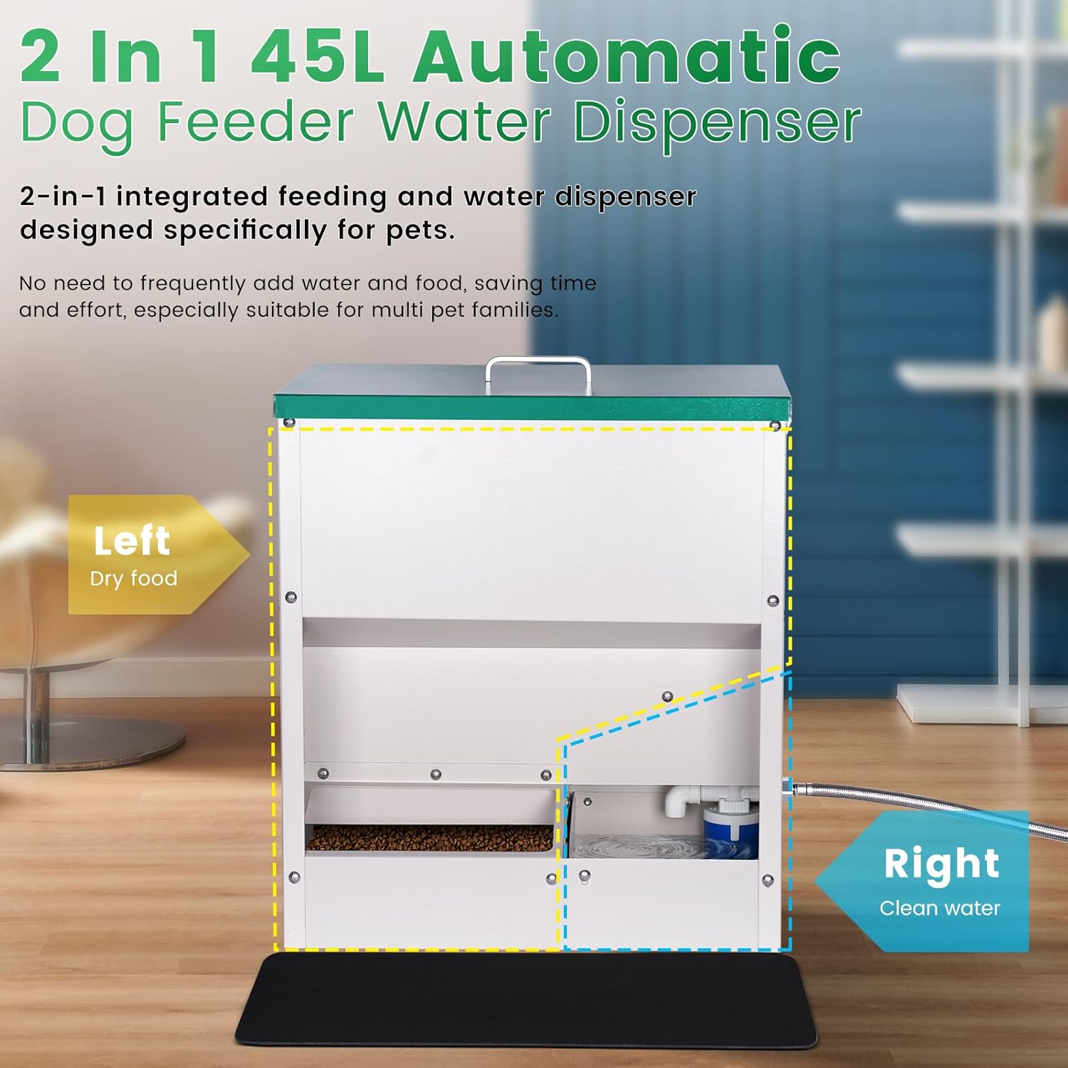 48lb Dog Feeder Automatic Large Breed Dog Water Bowl Dispenser Big Dogs Cat Feeder and Water Set Gravity Pet Feeder Auto Outdoor Waterer