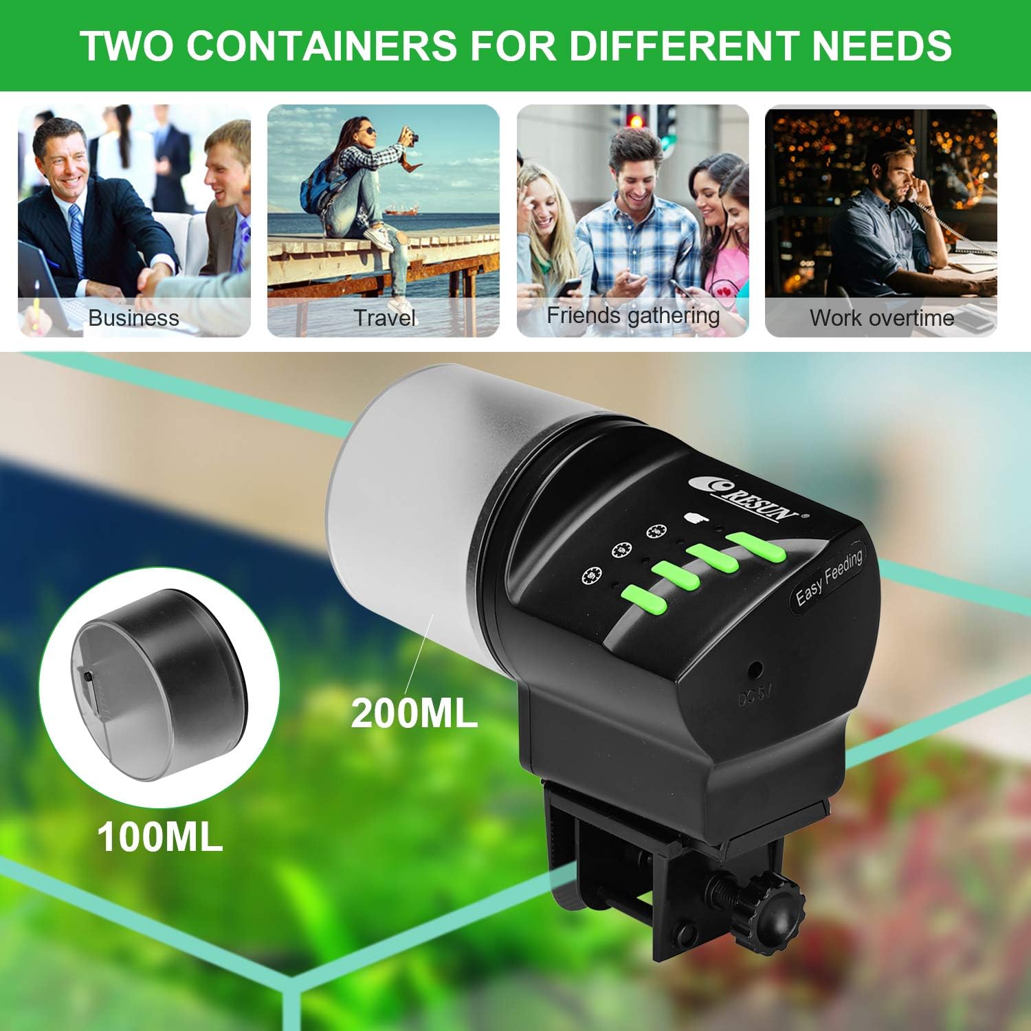 TWO FEED CONTAINERS: With 100ml and 200ml feed boxes, choose one according to your outing time, hold enough food to keep your fish fat while you’re away.