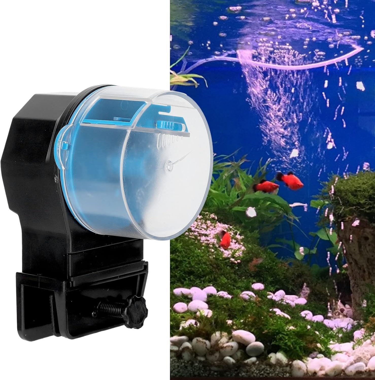 3. Suitable for different sizes aquarium, and two ways to install the feeder, can be individually placed or insalled.