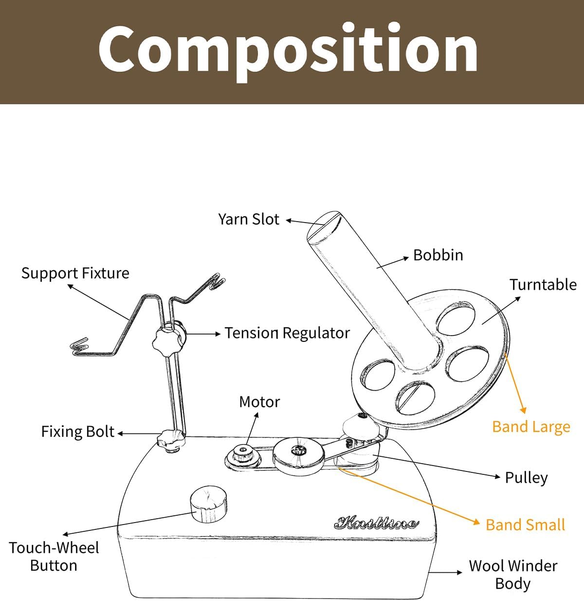 Automatic Yarn Winder – No more hand winding, Just click the button and enjoy your coffee break.