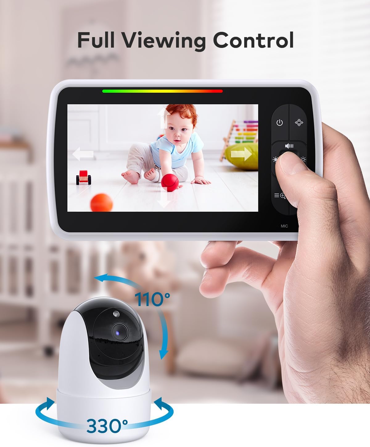 Enjoy the freedom to monitor every corner. The video camera rotates 330 degrees in horizontal and 110 degrees vertical, ensuring you have a clear view of your kid from any angle.