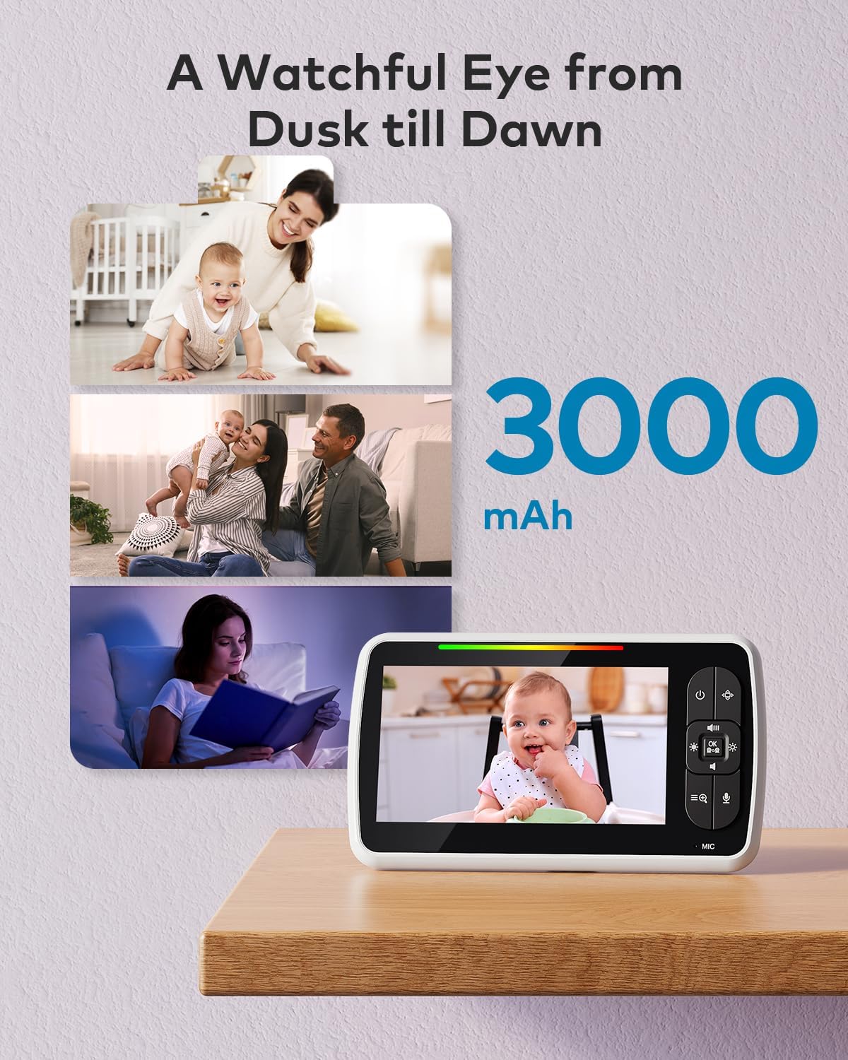 The baby audio monitor features built-in IR LED lights that capture clear images of your baby at night, allowing you to monitor the state of your baby when sleeping even after the lights have been turned off.