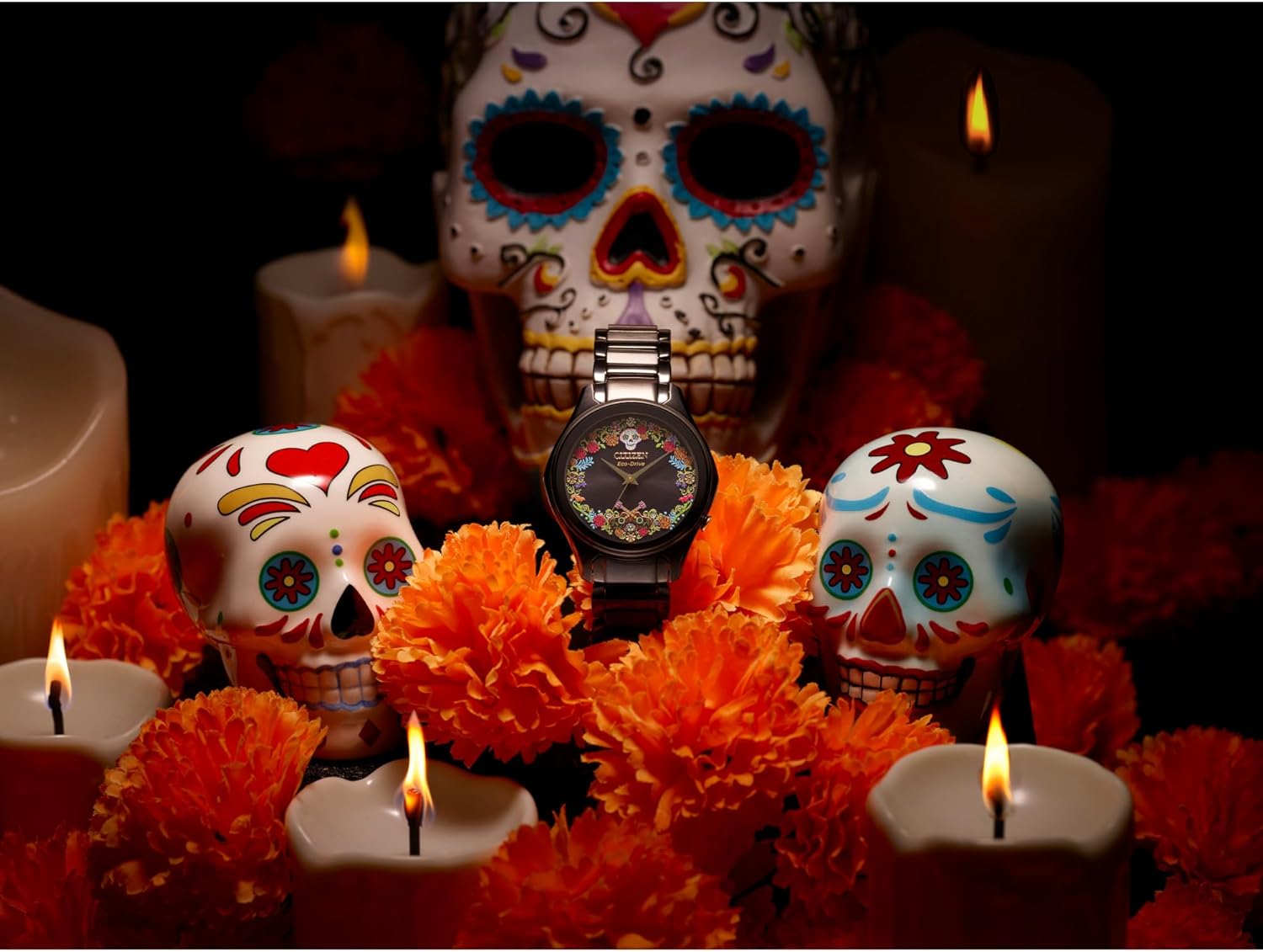 “Coco,” the beloved Disney and Pixar film, is a celebration of Mexican culture that reminds us of the power of family connection and the importance of pursuing your dreams. The new Disney | Citizen Sugar Skull timepiece beautifully expresses these themes on the art-filled black dial set with crystals and gold-tone hands. The dial’s lush border is filled with symbolic details, including marigolds that compose the bridge that takes our hero, Miguel, to the Land of the Dead and guitars that represent his musical gifts. Prominent at the dial’s top and bottom are sugar skulls that are placed on altars during Día de los Muertos as offerings to deceased loved ones. A black IP stainless steel case and bracelet add elegance, and Eco-Drive technology adds sustainability: The watch is powered by any light and never needs a battery.