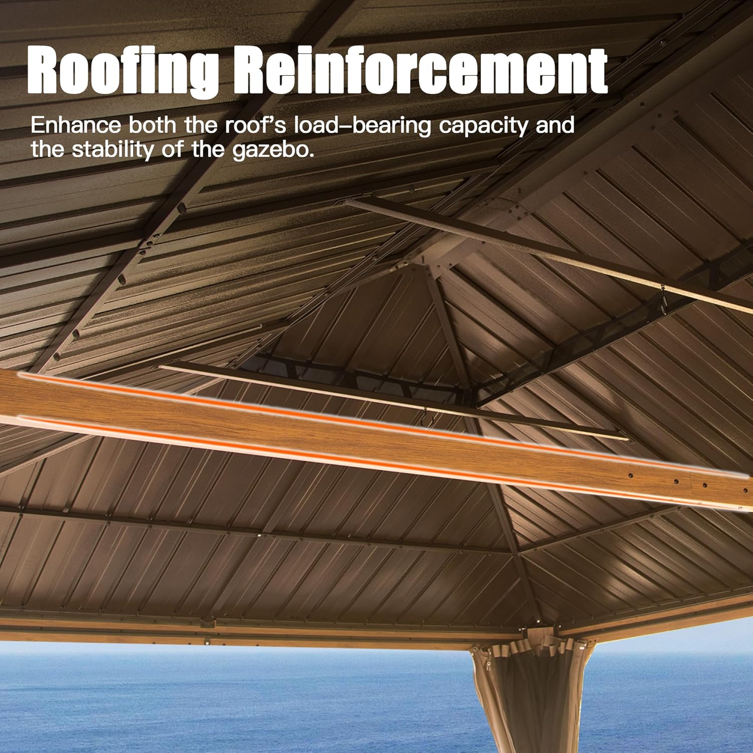 ❤️Realistic Wood Grain Finish- The 14x22FT hardtop gazebo features a stunning wood grain transfer print, giving it an authentic and natural look.