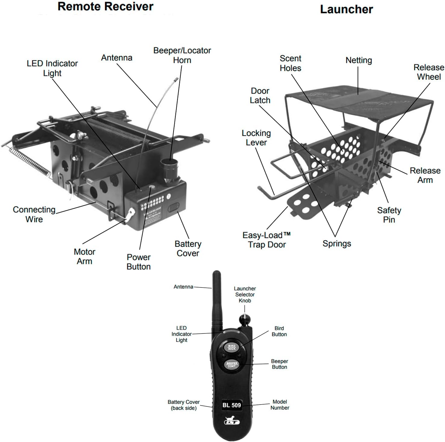 REMOTE BIRD LAUNCHER – Whether you are training your hunting dog to point wild birds in the field, or introducing your retriever to quails or pigeons, the DT remote launchers are a must for properly training any bird-hunting dog; The BL Series of Bird Launchers is the toughest, quietest, easiest loading series available, and it features an impressive 700-yard remote range