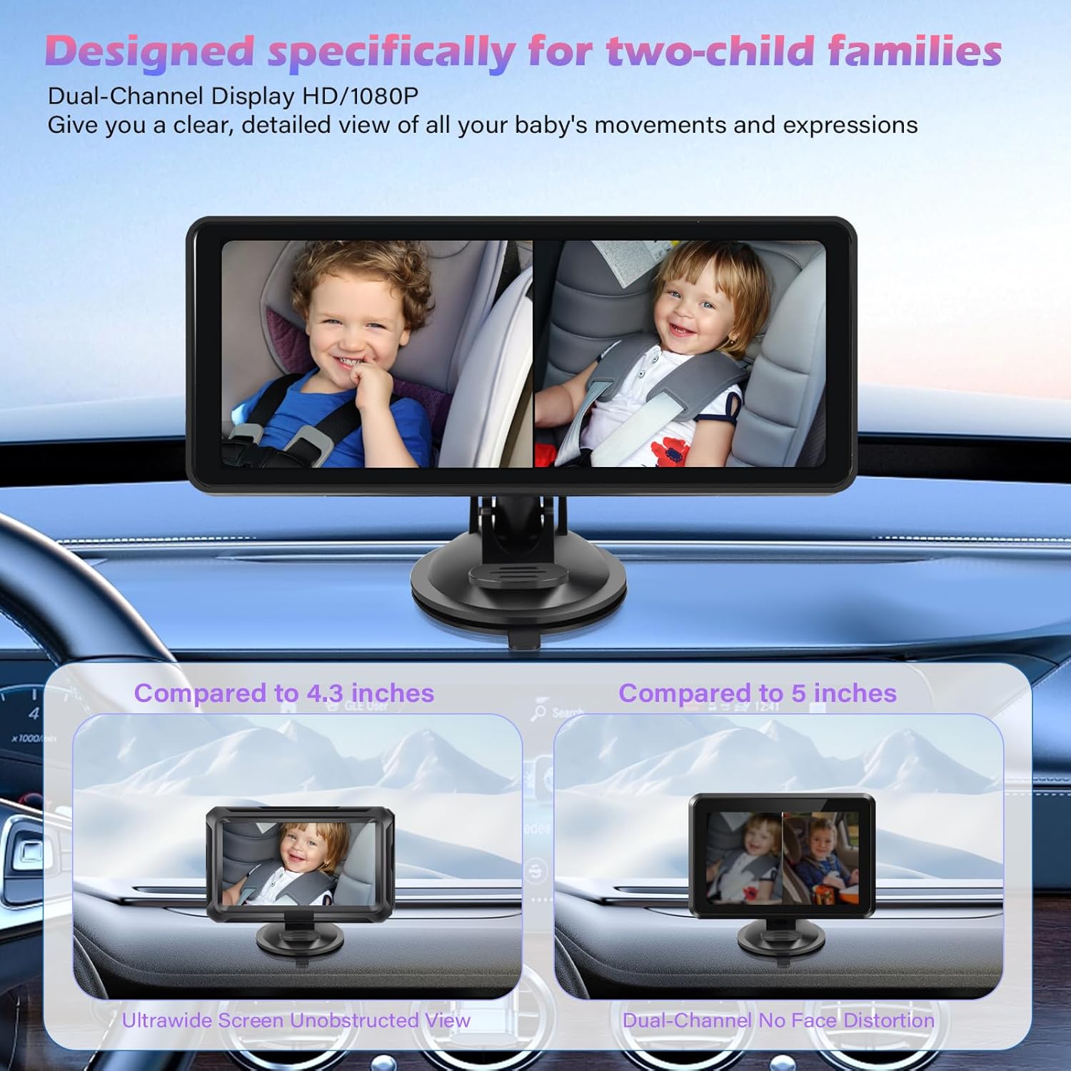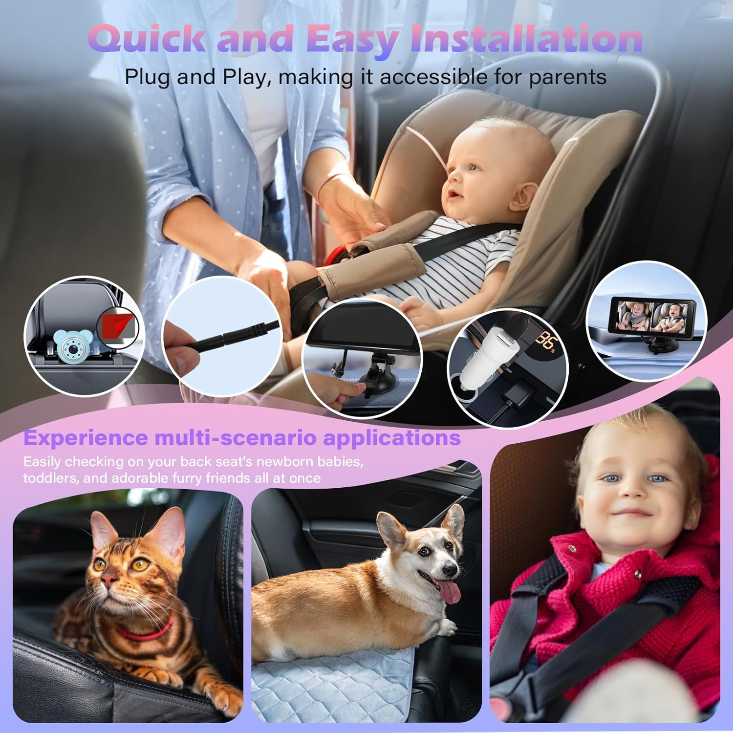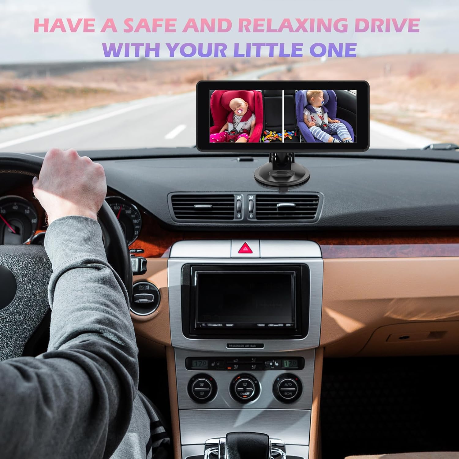 Real-Time Safety Monitoring — Peace of Mind on Every Journey: With dual 1080P HD cameras and a 7-inch split-screen display, the baby car camera ensures you can monitor both kids simultaneously, providing unparalleled safety and reducing parental anxiety. Perfect for keeping an eye on your little ones during family road trips