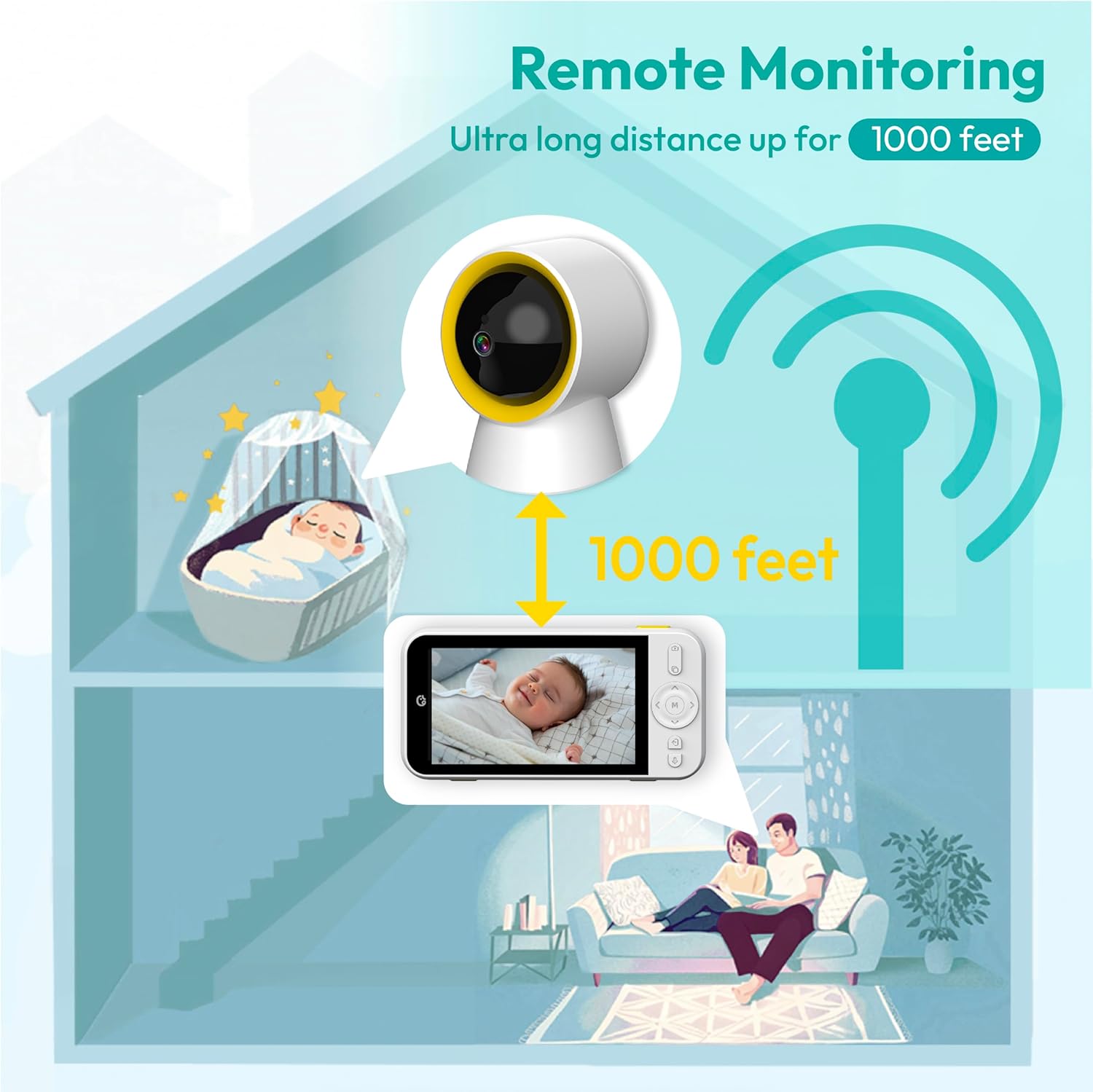 ใ๐๐จ๐ง๐ -๐๐๐ง๐ ๐ ๐๐ข๐ซ๐๐ฅ๐๐ฌ๐ฌ ๐๐๐๐ฒ ๐๐จ๐ง๐ข๐ญ๐จ๐ซใ With 6000mAh battery and 1000Ft coverage, The wireless baby monitor ensures parents can monitor your babyโs status reliably in parents’ bedroom,living room,kitchen, offering peace of mind without requiring WiFi connectivity.