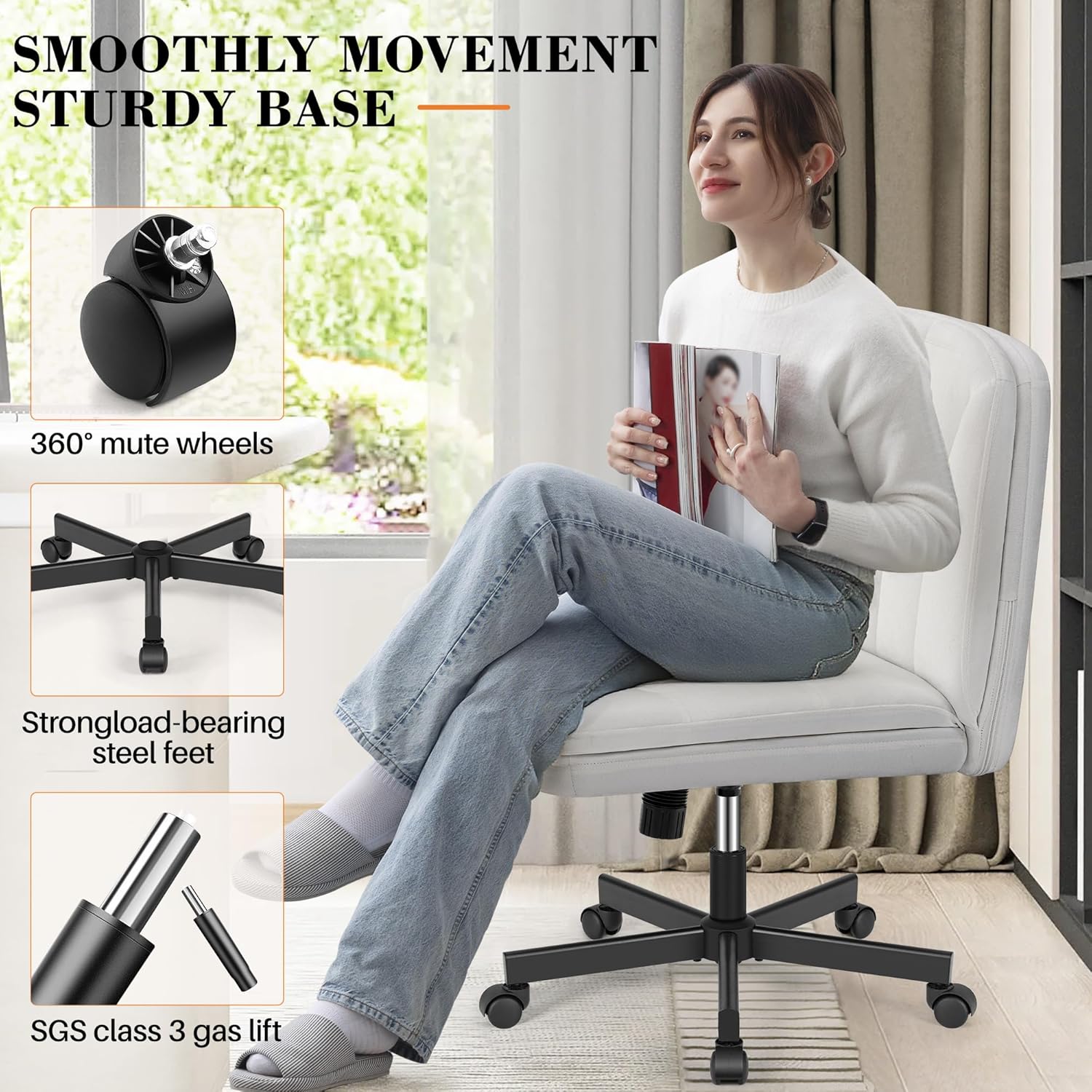 【Built to Endure Everyday Life】Designed for active households, this cross legged office chair features a reinforced metal frame supporting up to 300 pounds. This vanity chair’s premium velvet surface resists scratches, stains, and pet damage, making it ideal for families with children, pet owners, or busy individuals who value durability and low maintenance.