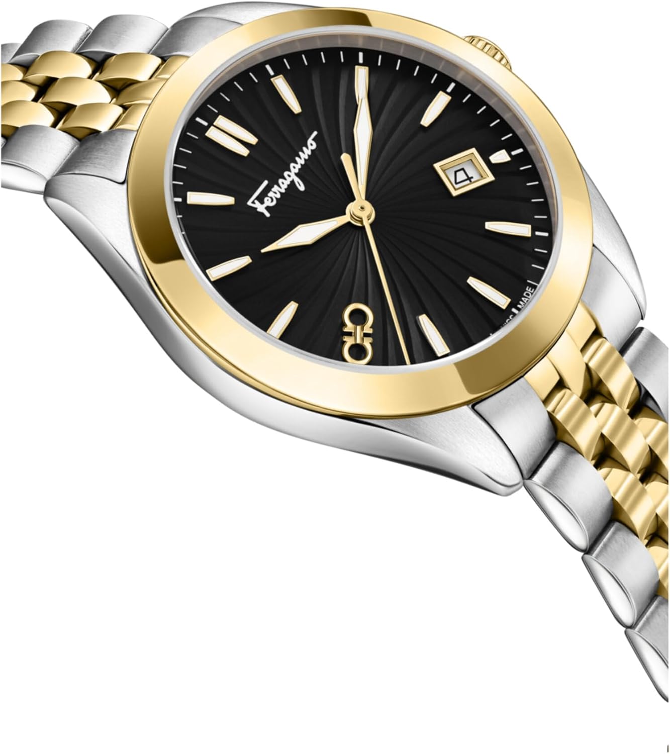 Ferragamo Ferragamo Classic Collection Luxury Womens Watch Timepieces with a Two Tone Bracelet and Case Featuring a Black Dial