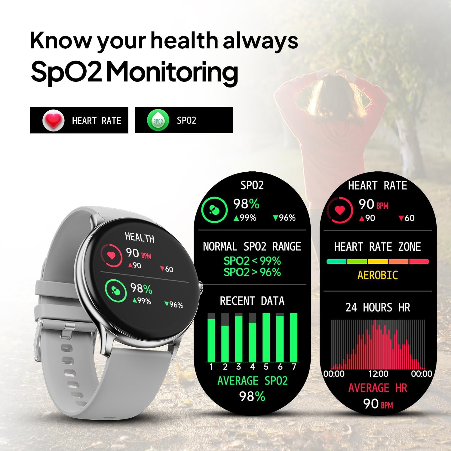 Health Tracking: Monitors heart rate, sleep, and blood oxygen levels.