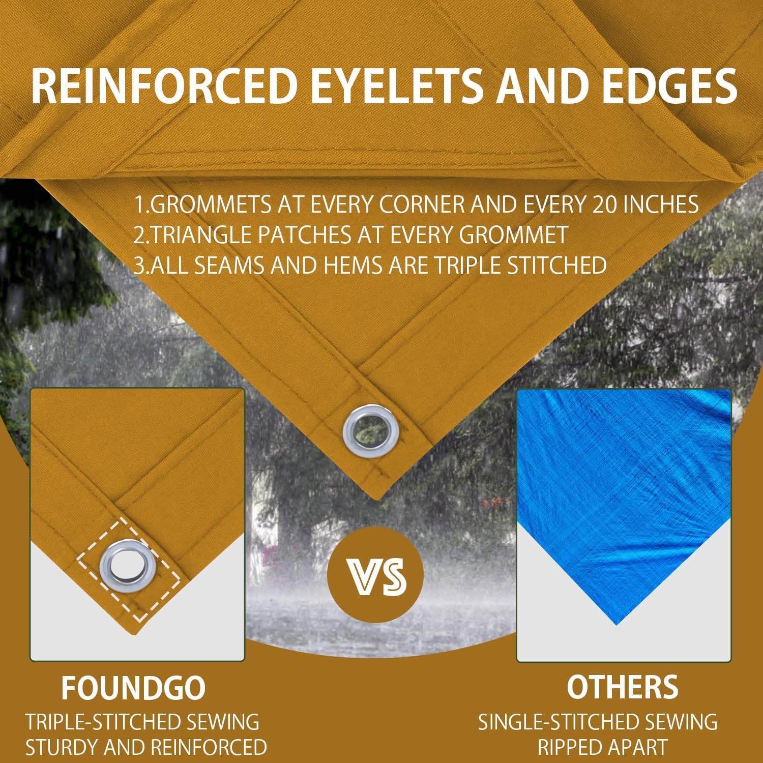 【Unmatched Material Upgradation】FoundGo canvas tarp, which is 22Mil thick and made of 14oz heavy-duty canvas, is a reliable asset. It offers a certain degree of water resistance, being sufficient to handle mild morning dew without getting soaked through. The fabric is breathable and enhanced by an organic fluorine silicone coating. This tarp is perfect for creating a comfortable and protected space and maintaining its integrity and appearance throughout multiple outings.