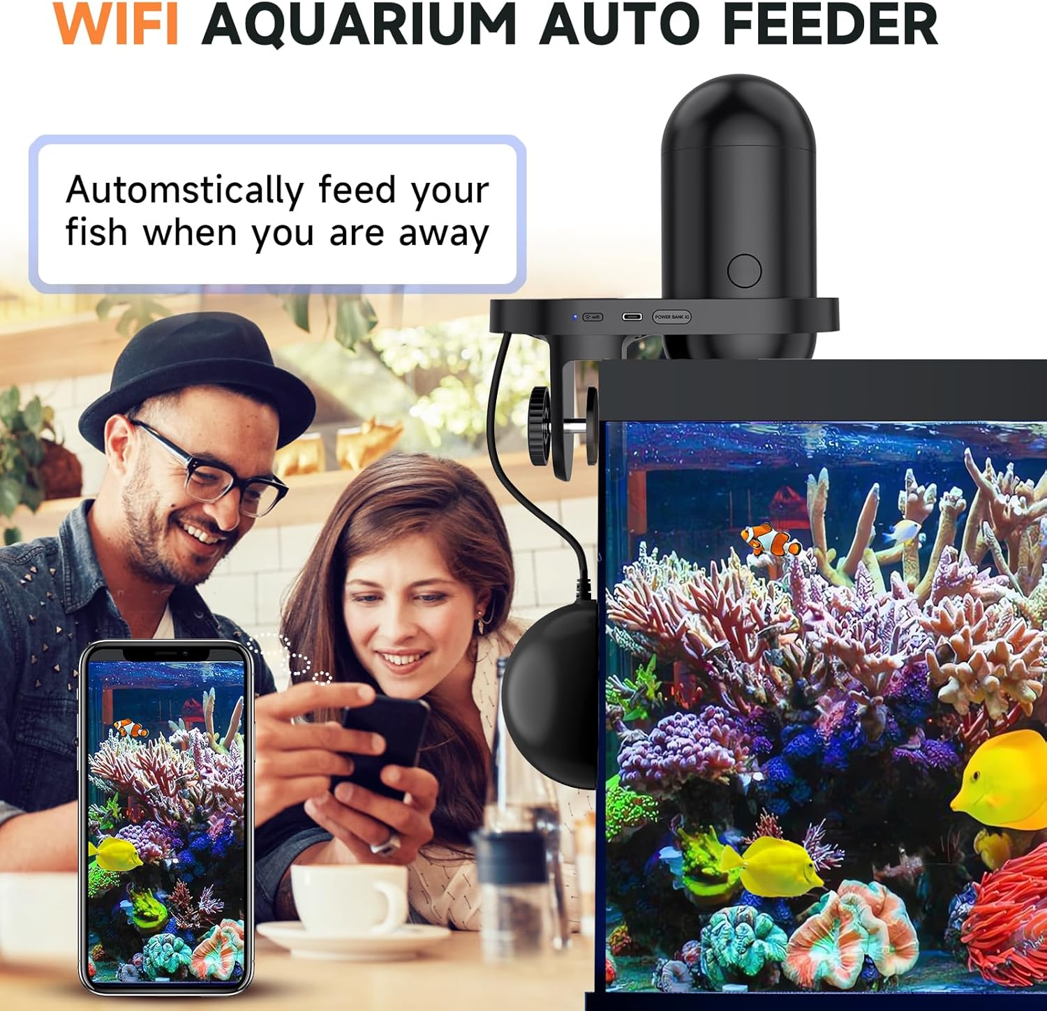 HD Camera Monitors Your Fish: Our automatic fish feeder is equipped with a 2k HD camera and uses a reusable nano-traceless adhesive that can be easily attached to the outer wall of glass and acrylic fish tanks. Open the APP, you can see the scene in the fish tank and monitor the feeding situation at any time. Take pictures, record videos, and share them on social media. This auto fish feeder is more interesting than ordinary feeders