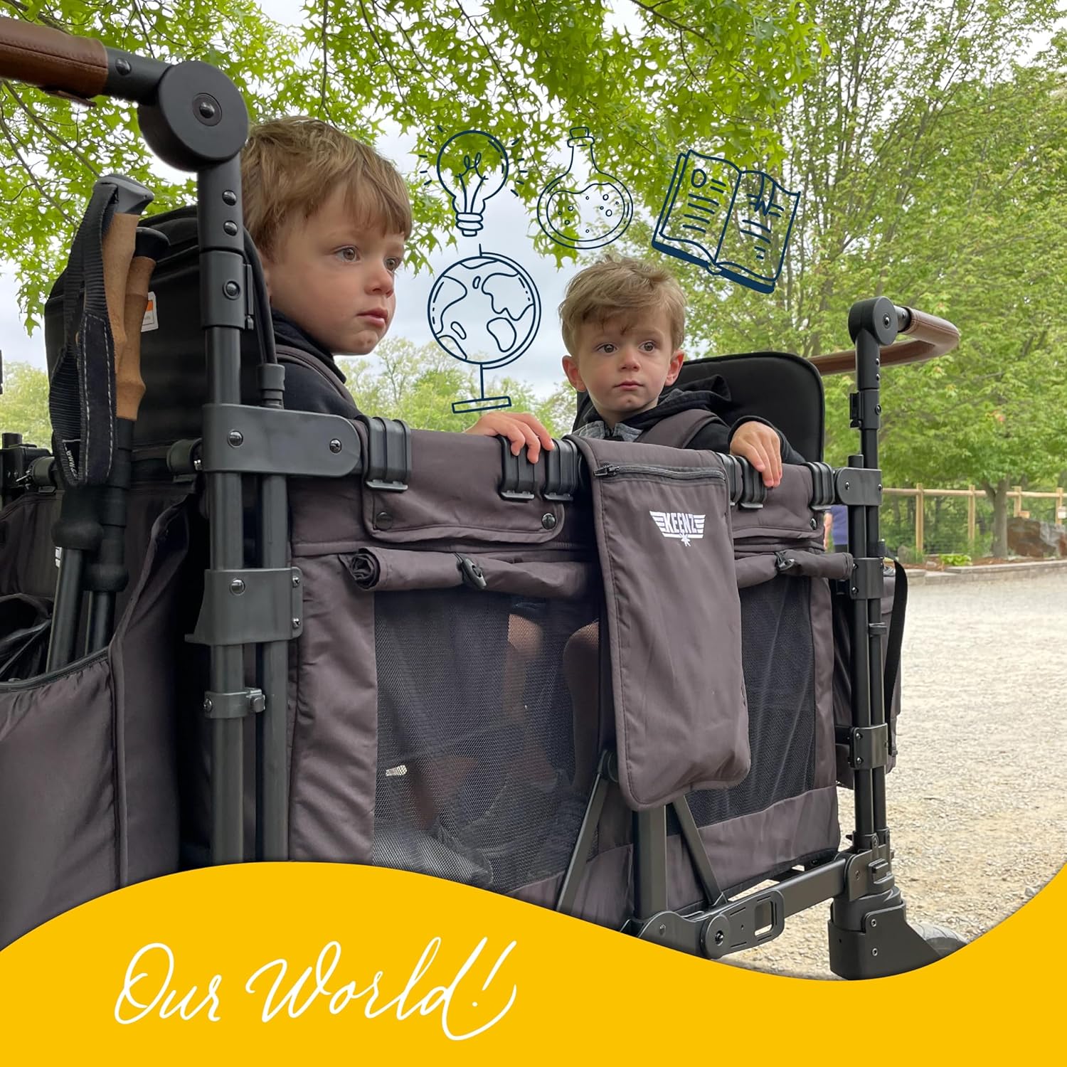 This is the SUV of stroller wagons, a four-seater that promises comfort for the little ones and effortless handling for the parents. Imagine a wagon that’s as ready for a quad of giggling toddlers as it is for a duo of tired tweens, with UV-protective canopy and reclining seats that ensure they’re resting while you’re trekking. Tailored for the trail or the town, the XC+ is where your family’s heart for exploration meets the home’s comfort on wheels.