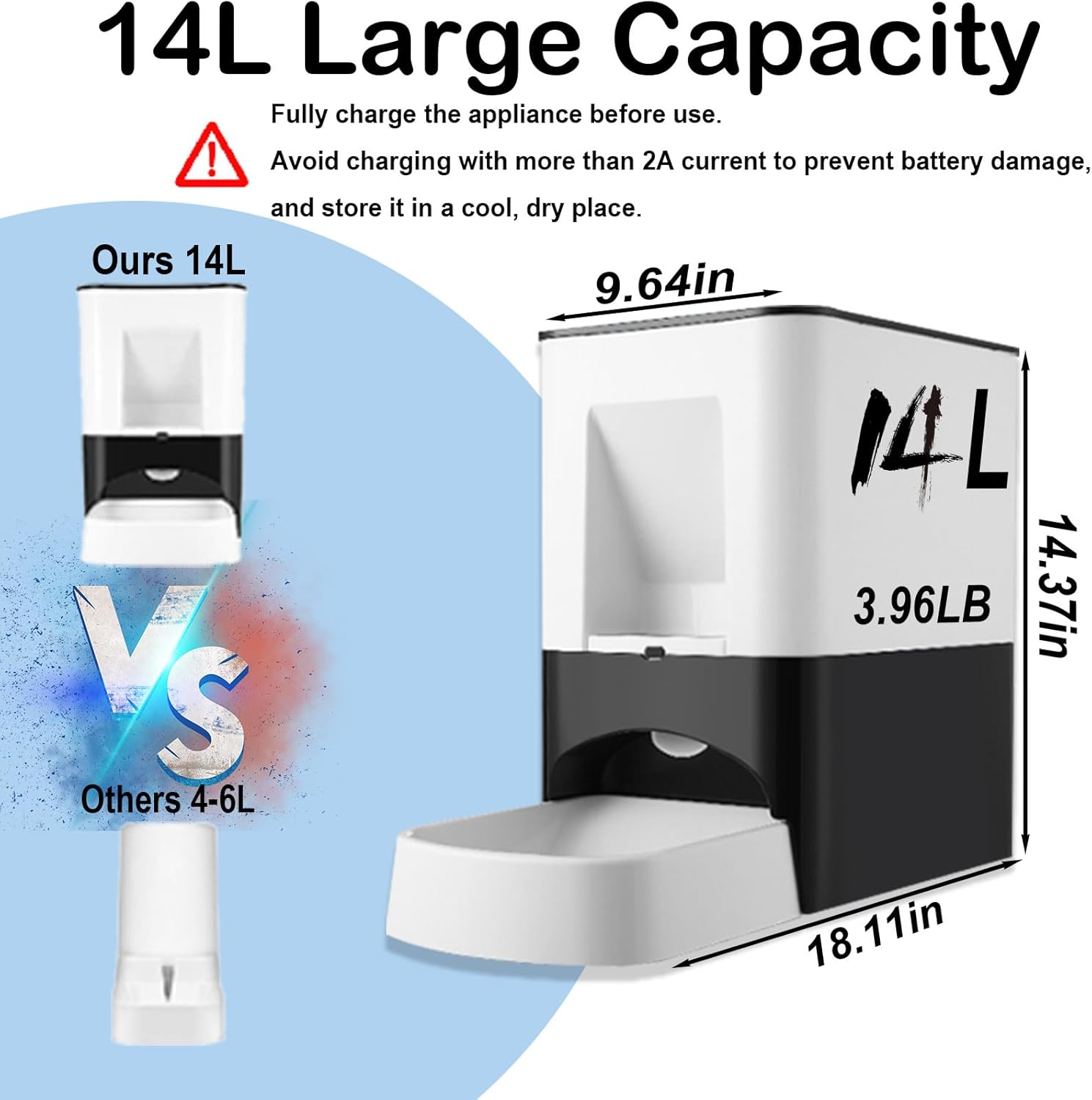 14L Large Capacity: The large food container reduces the need for frequent refills, saving you time and effort.