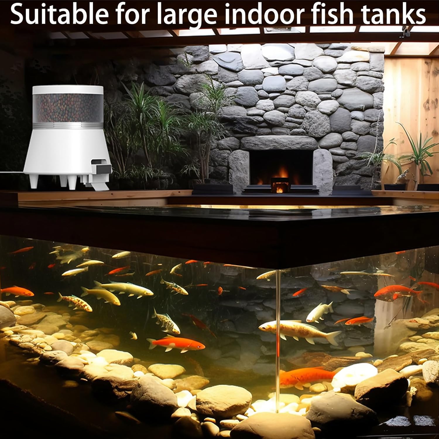 【Quick installation】 There are 4 fulcrums at the bottom of the fish feeder, which can be placed directly on a flat ground. Equipped with a screw fixing device, you can fix the fish feeder on a wooden board to prevent the fish feeder from shifting due to strong winds or intrusions from other animals.