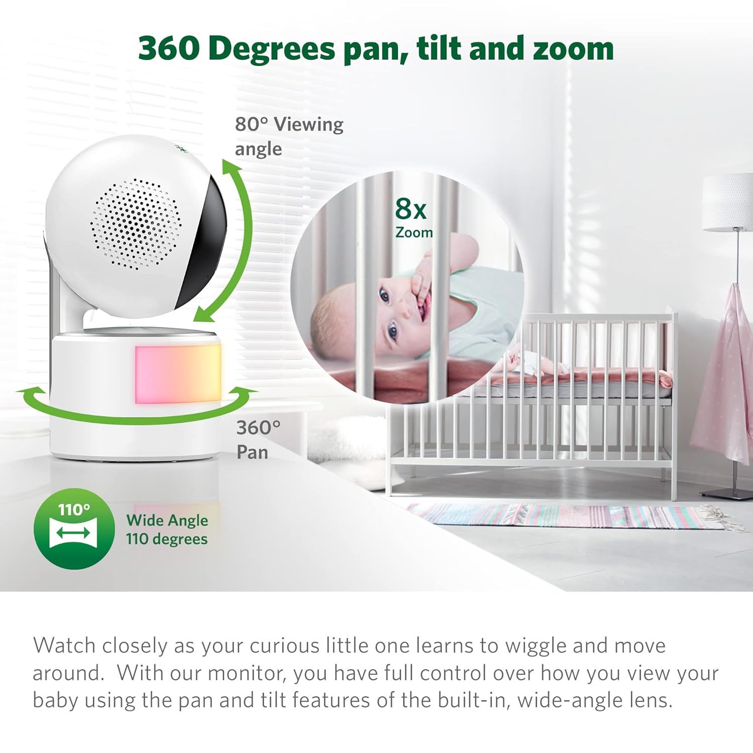 Product 1: [360 degree Pan & Tilt with 8X Zoom & 110 degree wide-angle lens] – Achieve 360 degree panoramic viewing and zoom in up to 8X to feel close to the baby.