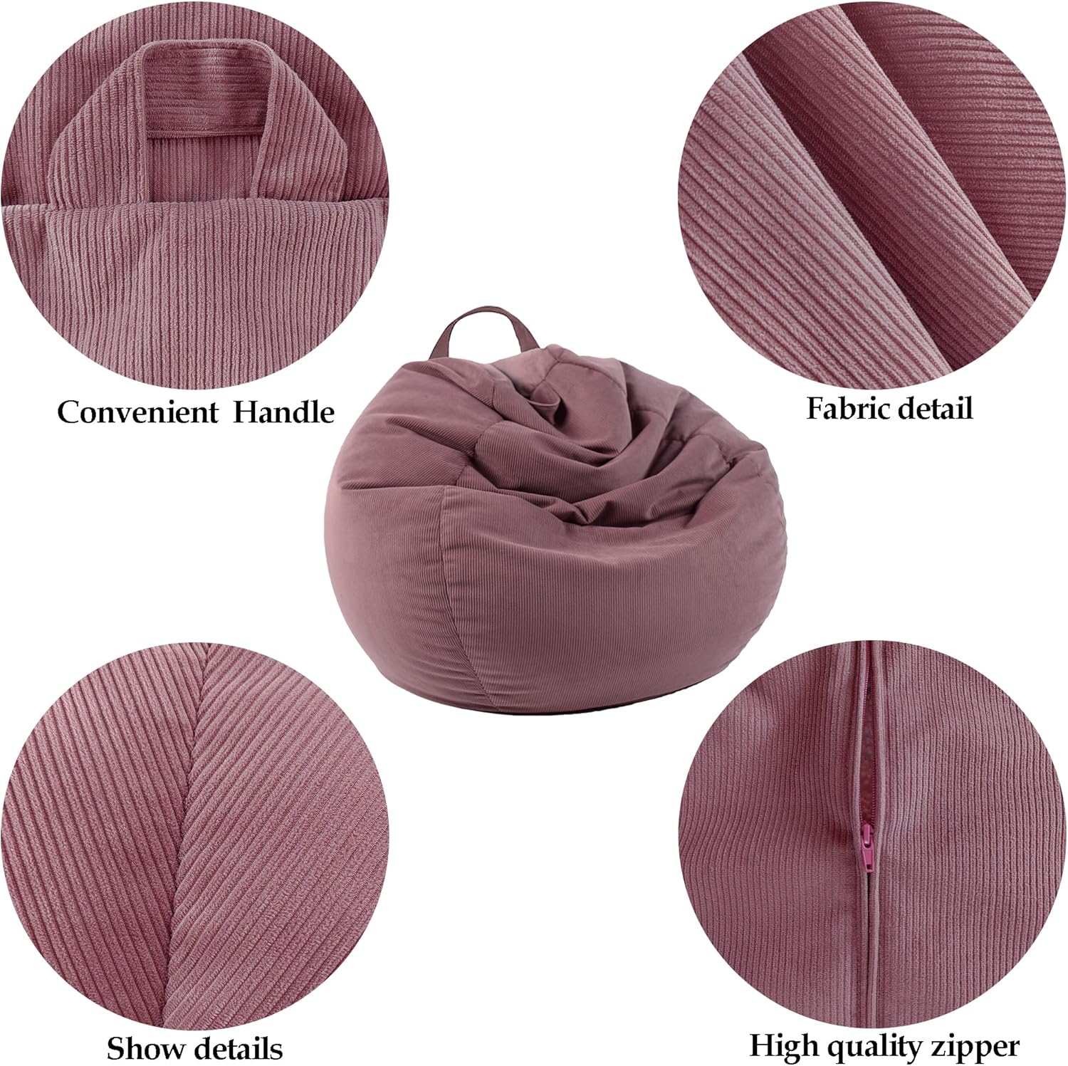 Friendly Fabric: We adopt the tested corduroy fabric, which is soft, cozy, environment-friendly, skin-friendly, air-permeable, wear-resistant, stain-resistant and fade-proof. The comfortable bean bag is supposed to be the best-loved place for you and your children,also can be your pets bed.(Bean Bags No Filler)