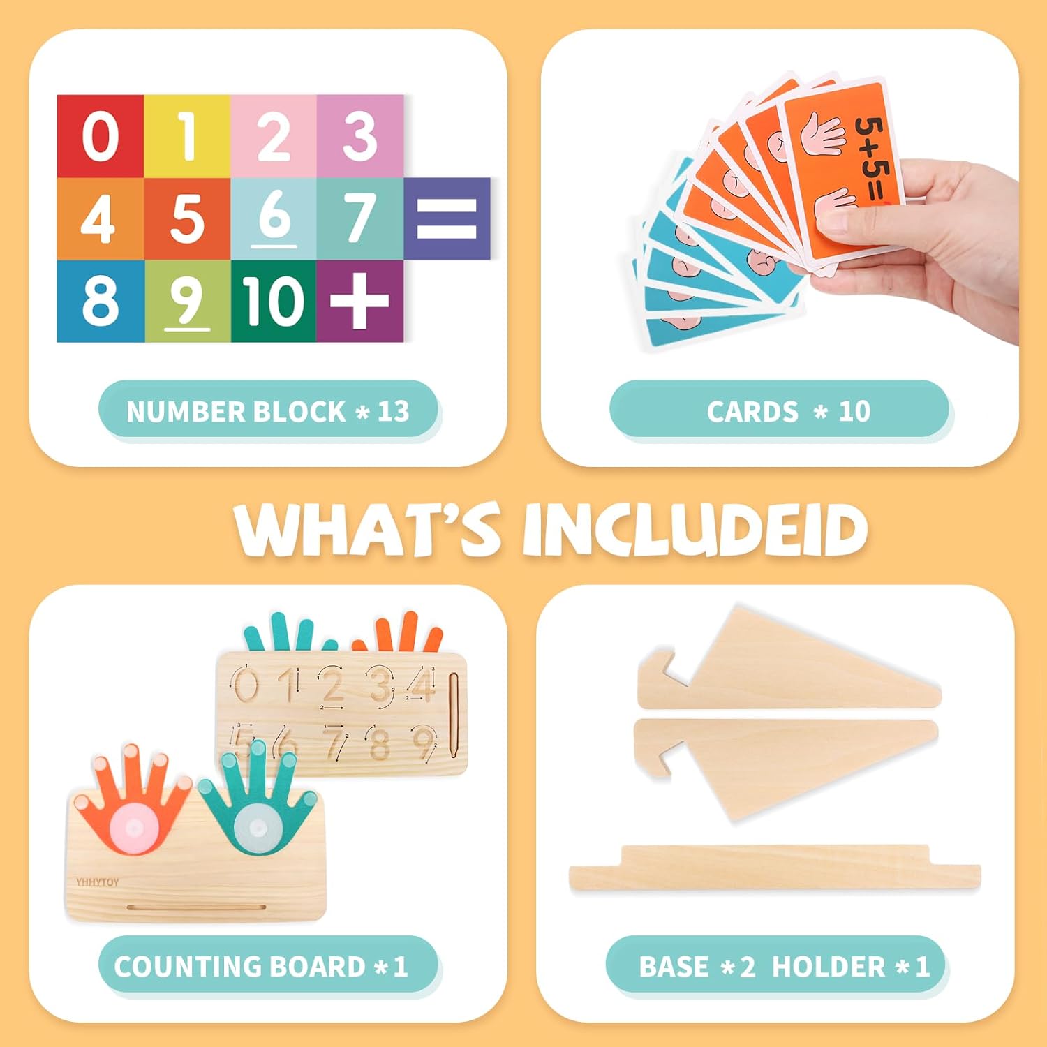 What’s Included – Fun Math Learning Kit: The YHHYTOY math manipulatives contain a double-sided wooden board for finger counting and number writing, 13 number blocks, 10 activity cards, 2 bases, a holder and a wooden pen. As an interactive toddler learning toy, with engaging math games for kids 3-5 5-7, it’s ideal as homeschool supplies for preschool learning activities