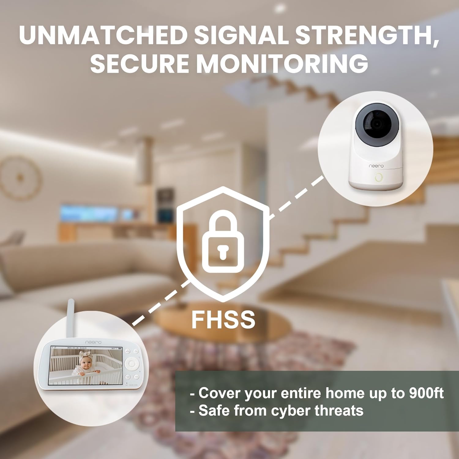 REACH EVERY CORNER – Our non wifi baby monitor with camera and audio comes with advanced (FHSS) tech which ensures a strong, secure signal up to 1000ft. No more lost connections or interference.
