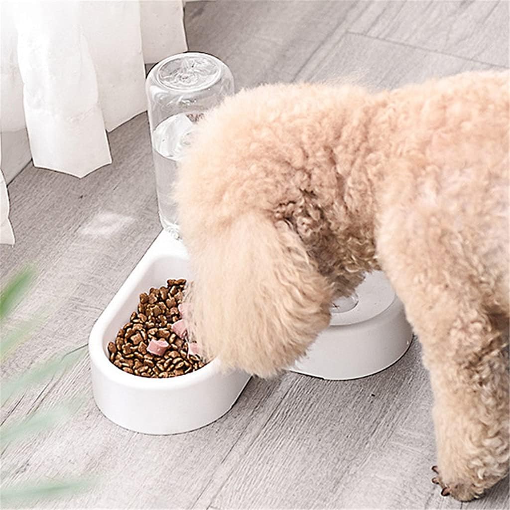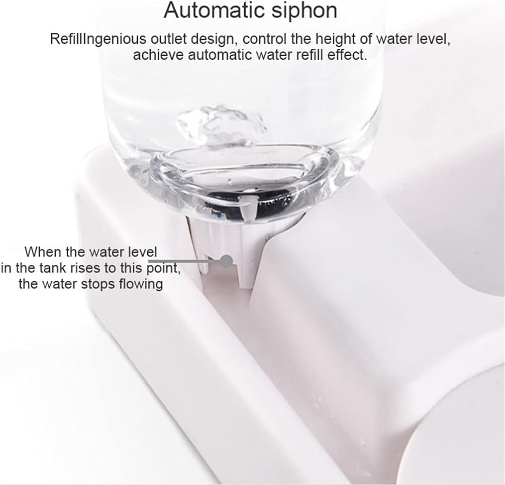 Safe materialMade of high quality and food grade PP material, BPA free,lightweight and make sure your pet completely safe from toxic substance.Dampproof BarrierThe unique barrier is designed to prevent the mouth hair from getting wet that prevent pets from staining their mouth hair during drinking, can effectively prevent dust and hair, and can also keep the water clean.Space saving designThe rightangled design can be placed against the corner of the wall, which effectively improves the utilization of space while stabilize the food bowl and make it not easy to tip over.Automatic water refillingUsing a delicate water outlet design, can control the height of the water level, and automatically refill water when the water level is low.Double bowl designUnique double bowls, 500ml largecapacity water bottle, largecapacity food basin, meet two requirements at one time, suitable for placing anywhere in the home, office for favorite pets.