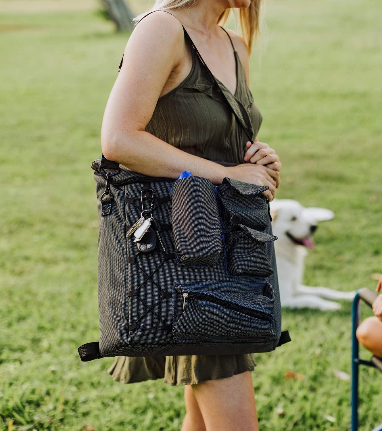 The Fusion Camping Chair is a heavy duty portable camp chair with so many features, you might make it your new office! A durable, powder-coated aluminum frame and ribbed padding in the seat and back rests is only the beginning – this outdoor chair with table on the right side also includes a two-tiered, accordion-style shelves hanging below, plus a side-mounted, fully-detachable 24+1-can-capacity cooler with its own backpack straps, a cell-phone-specific pocket, specialized fabric loops for an umbrella or sports banner, and numerous pockets. Show off your team spirit everywhere you go with this chair, adorned with your favorite team’s logo across the back and cooler. The Fusion is more than an outdoor portable chair, it’s a camp chair, a beach chair, and heck – a lawn chair relaxation throne.