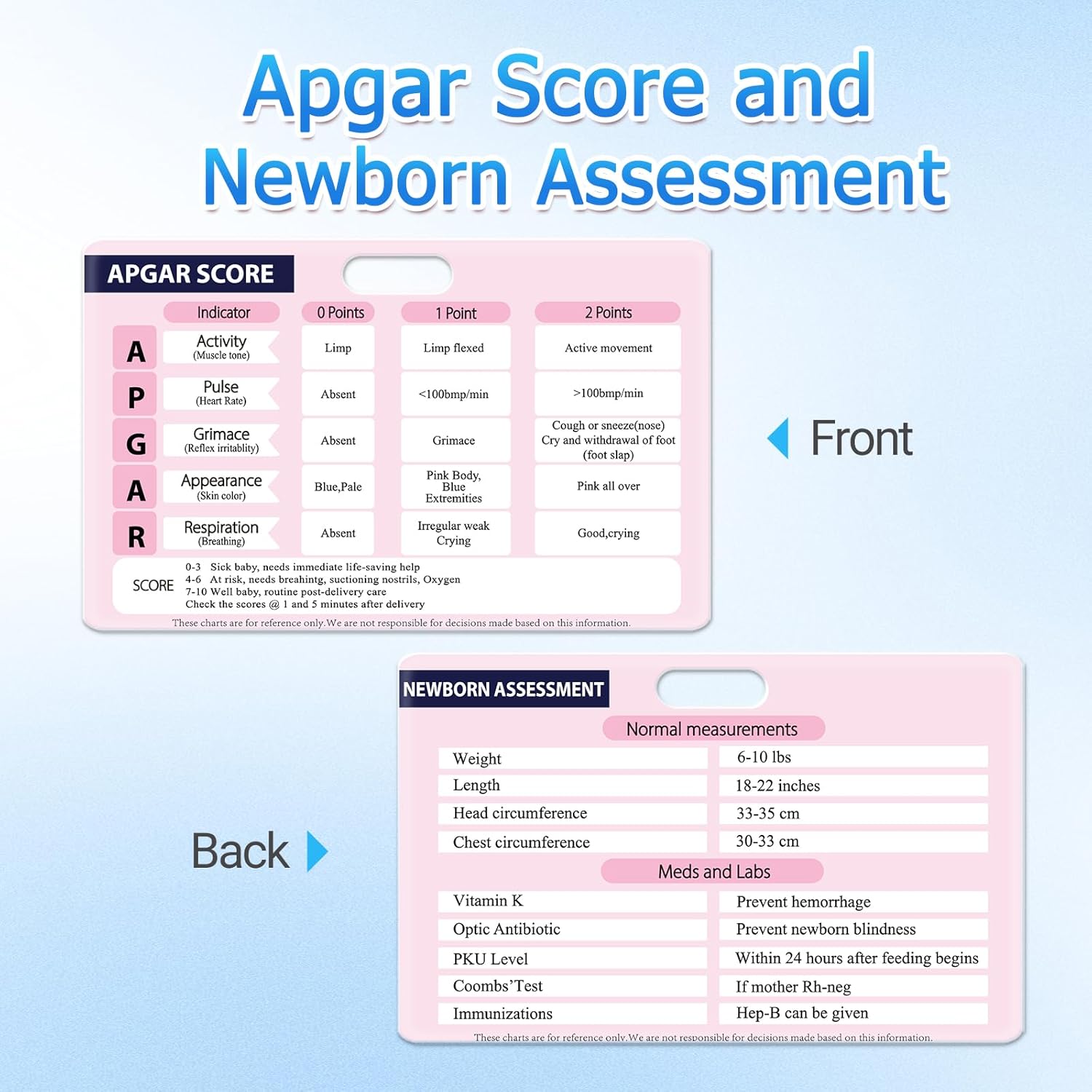 APGAR Score Reference Card for Newborn Assessment: This APGAR flash card provides a detailed and reliable guide for evaluating the condition of newborns after birth. It will be an excellent addition to nurse’s badge.