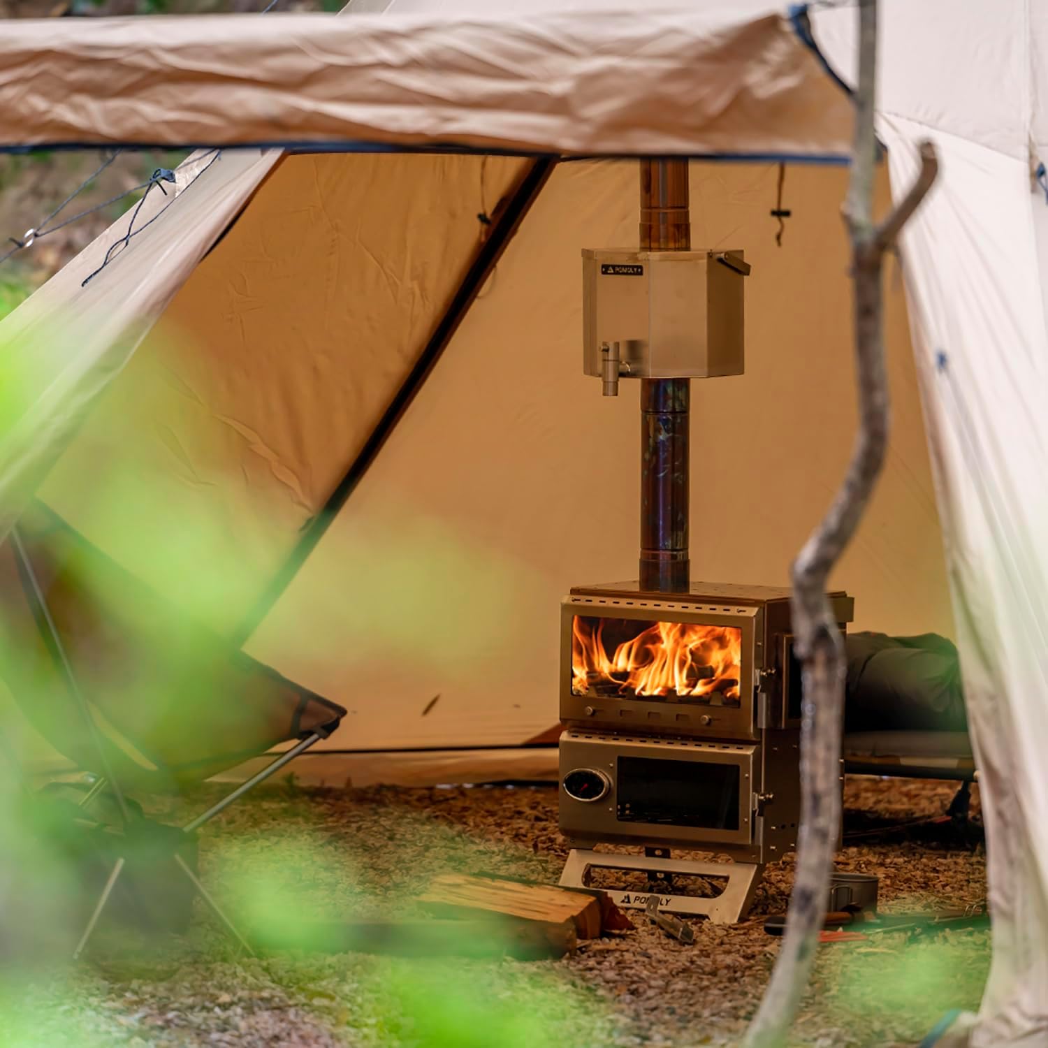 The Baker stove combines the firebox and the oven, the temperature of the firebox can be directly transferred to the interior of the oven below, so that the temperature of the oven can easily reach 200 ° C / 400 ° F, and the highest temperature can reach 260 ° C / 500 ° F. The glass on the front door and the glass on both sides can make the heat radiation from the firebox transfer to the tent interior more quickly, so that the temperature inside the tent can rise faster.
