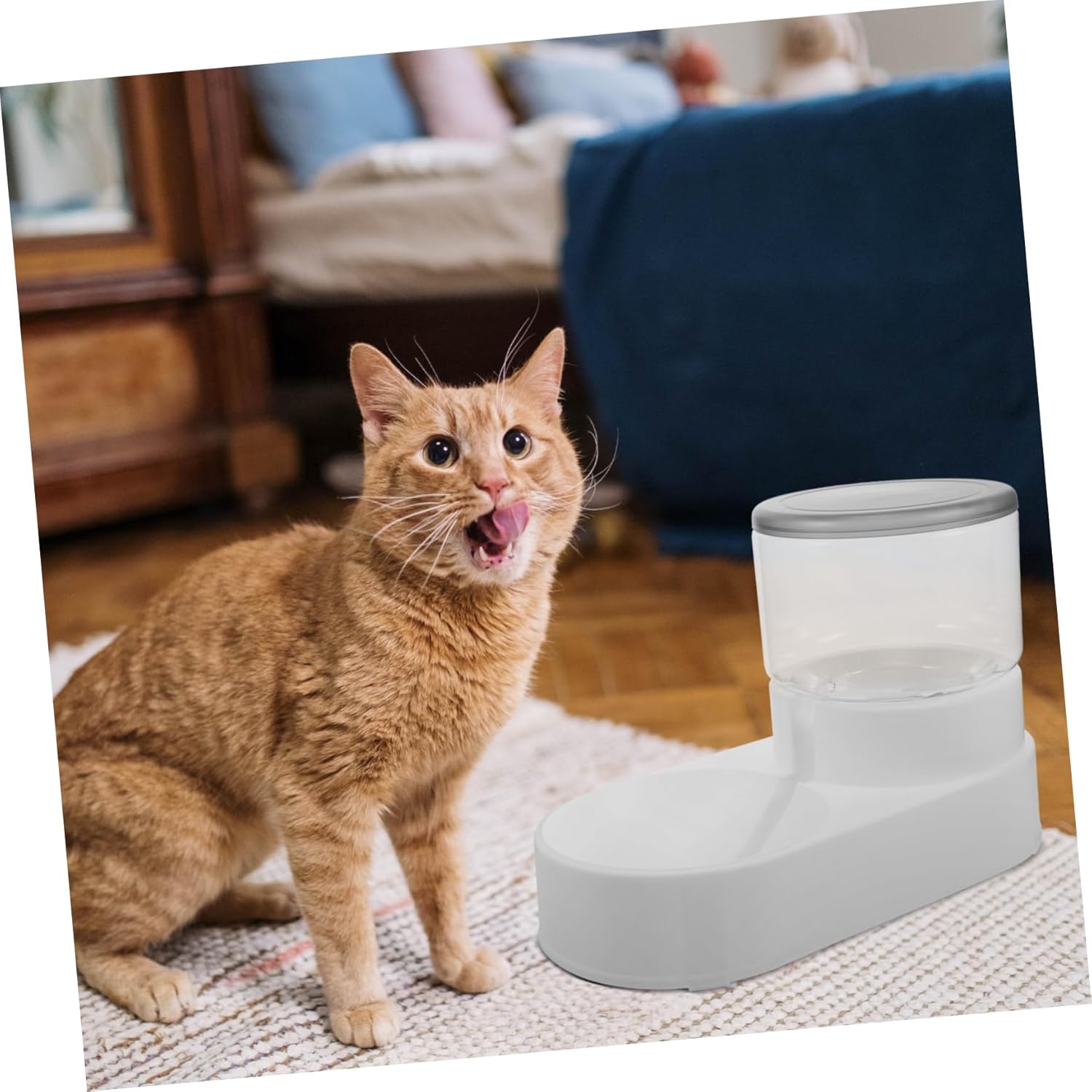 -Your cat or dog can eat from feeder, allowing the right amount of water to come into the bowl water dispenser.