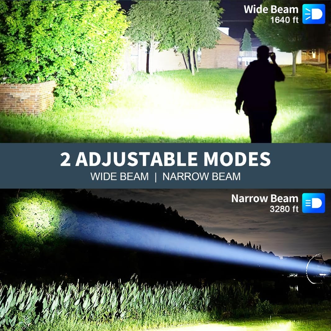[990,000 Lumens Super Bright Flashlights] GDPLUS rechargeable high lumen flashlight is equipped with updated ultra-bright LED chips that emit 990,000 lumens at maximum power. It can easily illuminate a 200 square meter space with a maximum illumination distance of up to 3280 feet. Easily light up everything around you!