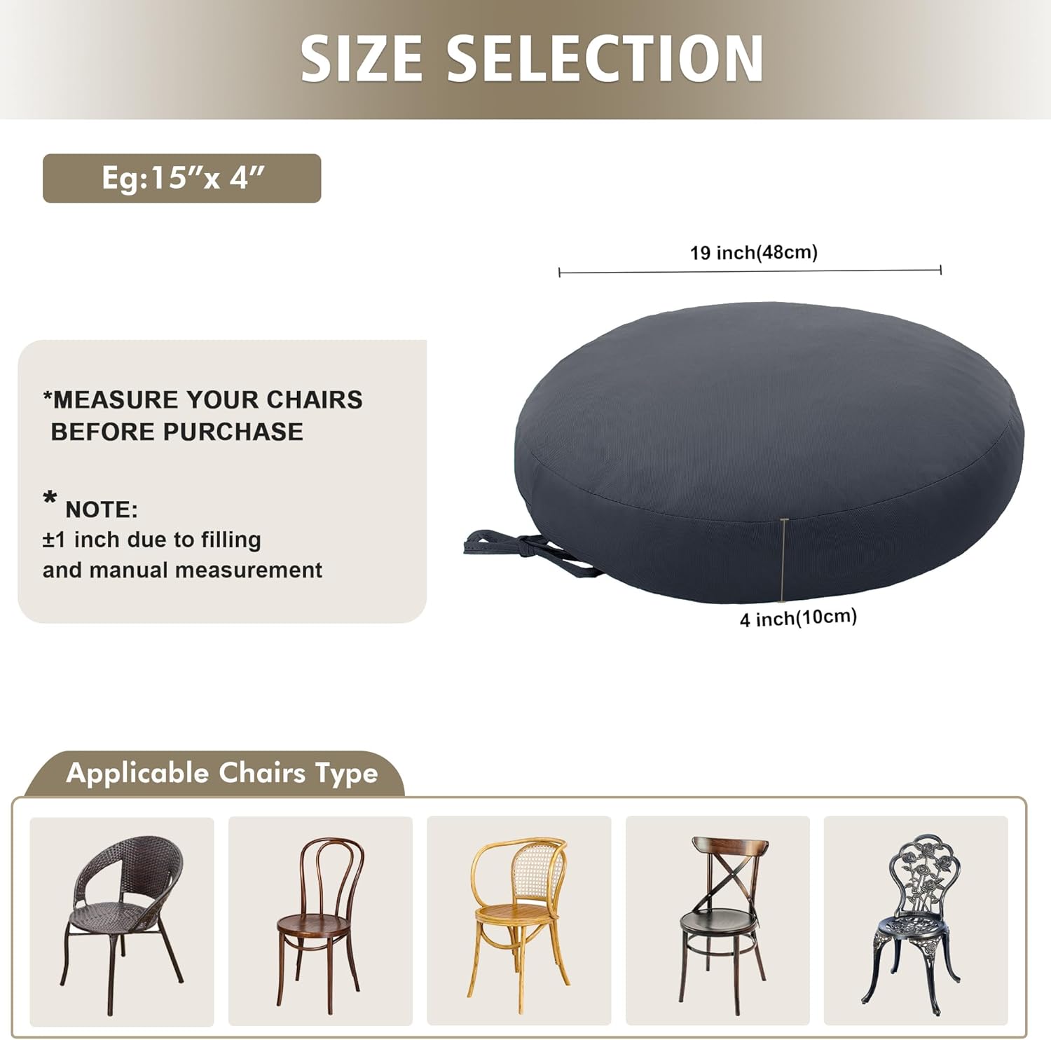 【Stays Secure with Adjustable Ties】Built-in tie-down straps ensure a stable fit, keeping your cushions firmly in place even on smooth wicker or metal chairs. Designed to handle breezy patios or high-traffic outdoor zones with ease.