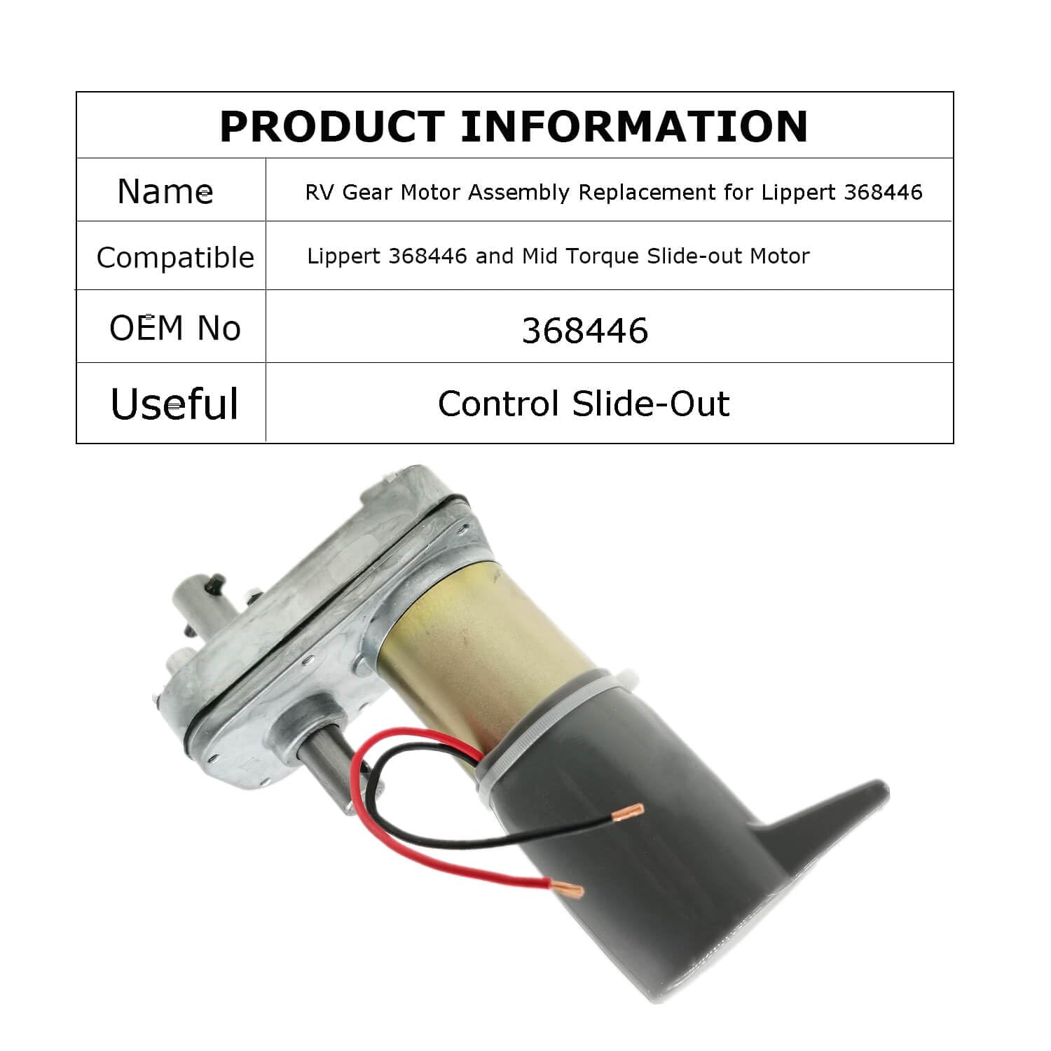 [Compatible]: This RV Gear Motor Assembly Replacement is compatible with the Lippert 368446 and Mid Torque Slide-out Motor, ensuring a perfect fit for your recreational vehicle.