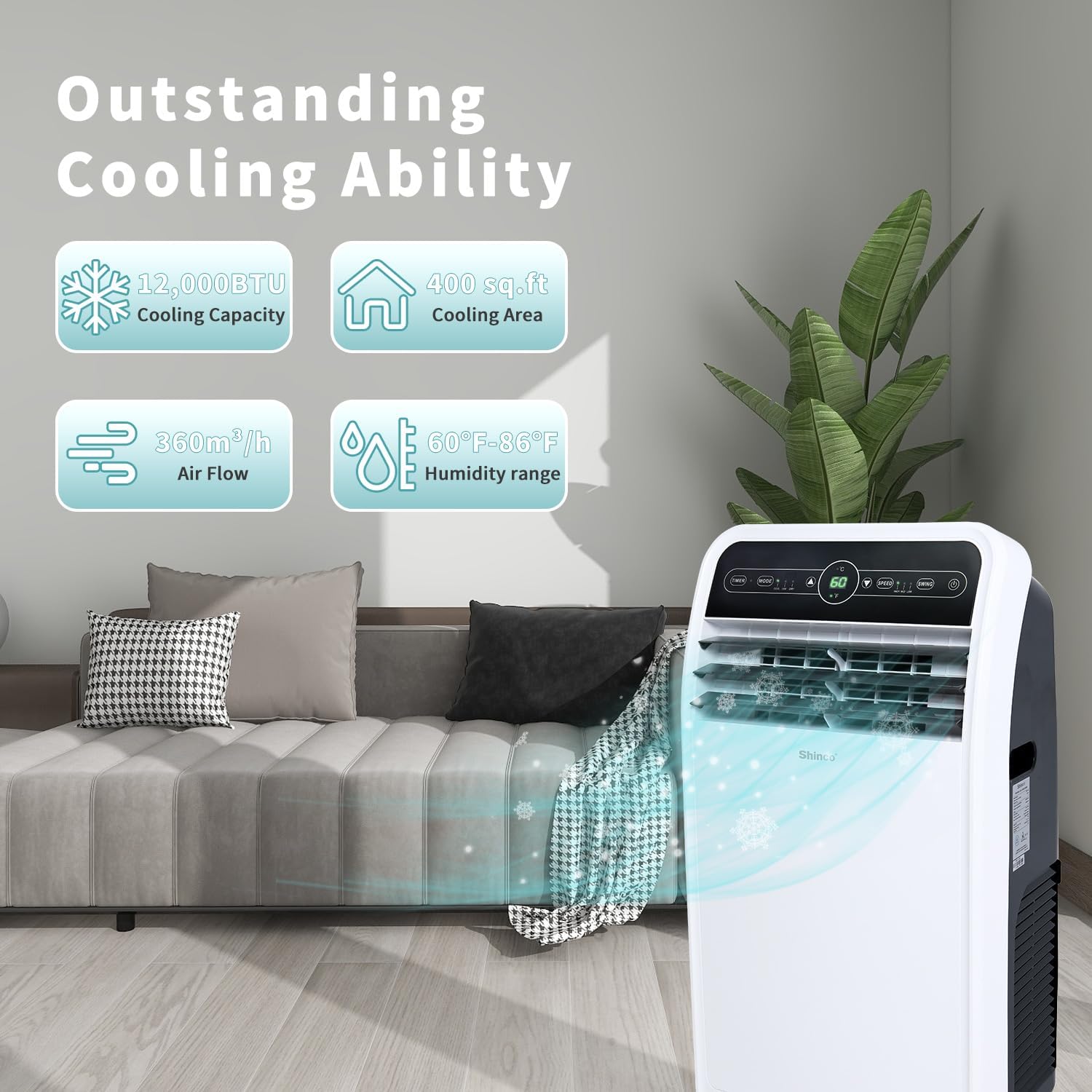【OUTSTANDING COOLING ABILITY】- Shinco powerful ac unit owns a cooling capacity of 11,500 BTU(ASHRAE) / 7,400 BTU(SACC)(Tolerance of 5% between the measured cooling capacity and the nominal cooling capacity), making it perfect for cooling small to medium-sized spaces up to 400sq.ft with ease and making you can enjoy a comfortable and refreshing environment even in the hottest summer days. The adjustable temperature range of 60℉-86℉ allows you to customize your cooling experience to your liking