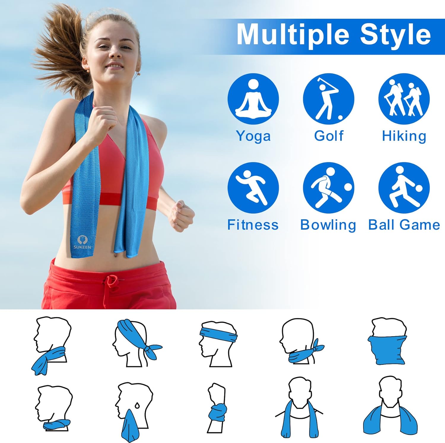 Sukeen Cooling Towel for Neck and Face(40″x12″),Bulk Ice Towel, Quick Dry Sports Cool Towels, Soft Breathable Sweat Towels for Workout, Yoga, Golf, Gym, Camping, Sport, Running(60pack)