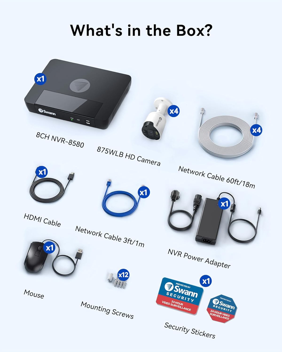 Swann Master Security Camera System: Upgrade your home security with the Swann 4K Master Security Camera kits. This comprehensive package includes a 8-channel NVR with a 2TB HDD, expandable to support up to 6TB of storage. With Swann, rest assured that your property is under constant surveillance. This comprehensive package includes a 8-channel NVR (model NVR8-8580RN)