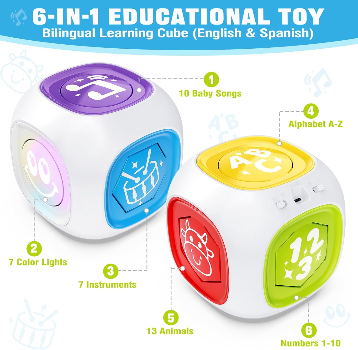 Multi-Functional Musical Interactive Toys with Lighting: This toddler toys interactive cube invites babies to press buttons and learn the 26 letters, discover numbers 1-10, and enjoy 13 animal sounds. The music cube toys also include musical instruments and 10 different songs, perfect for early childhood development, also a good choice for one year old girl boy birthday gifts and baby girl boy gifts.