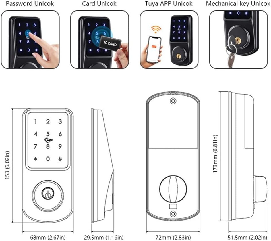 method: Tuya app, Code, Card, Mechanical key