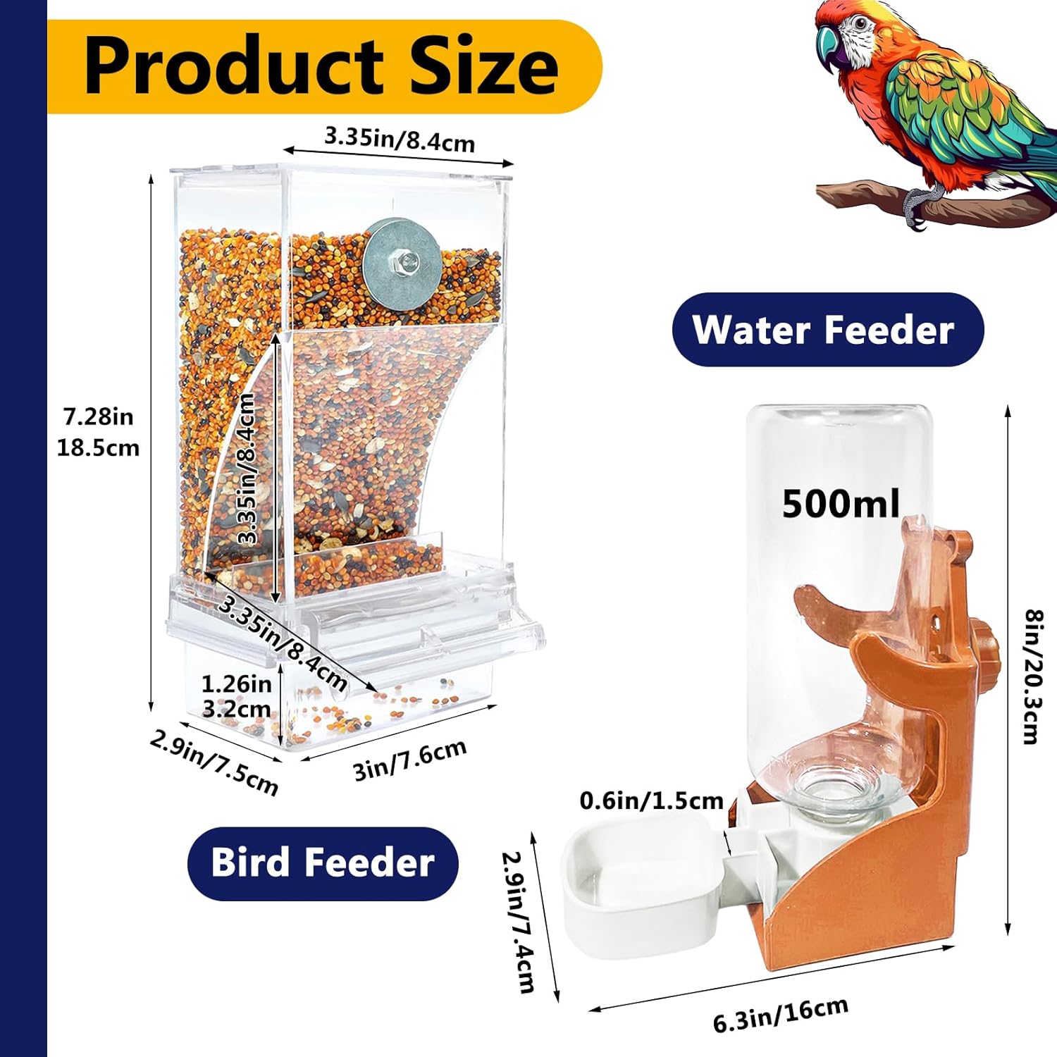 Durable and Safe Materials: Constructed from premium, rigid acrylic and high-quality thick transparent plastic, our feeders are built to last. They are safe, reusable, and designed to withstand the daily activities of your feathered friends. Paired with our commitment to excellent customer service and your satisfaction as our top priority, this bird feeder and water dispenser set is the perfect addition to your bird care routine.
