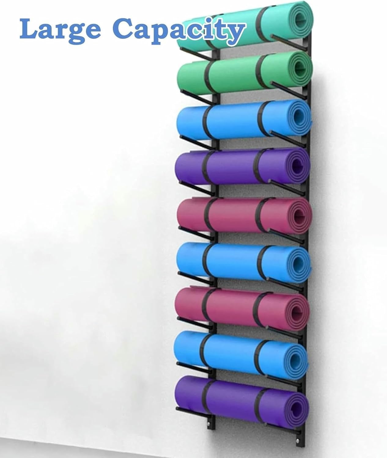 No more rugs lying on the floor!Use this yoga rug organizer to save space.♥ Product Specifications: – Material: Steel – Color: Black – Length: 9 layers – 155 cm (61 inches) – Depth: 18 cm (7 1/8 inches) ♥ Characteristics: – Store its different sizes of foam rods and foam rollers.- Have an orderly training space.- Perfect for gym at home or use in fitness classes.- High load capacity, stable design that will not turn.♥ Package Included: – 1 x Yoga covers storage shelf – All necessary accessories and screws ♥ Take into account: – The rugs are not included.- There may be 1-2 cm errors in manual measurement, see the real product.- The reason for the computer resolution, there may be color differences with the real products received, prevails.