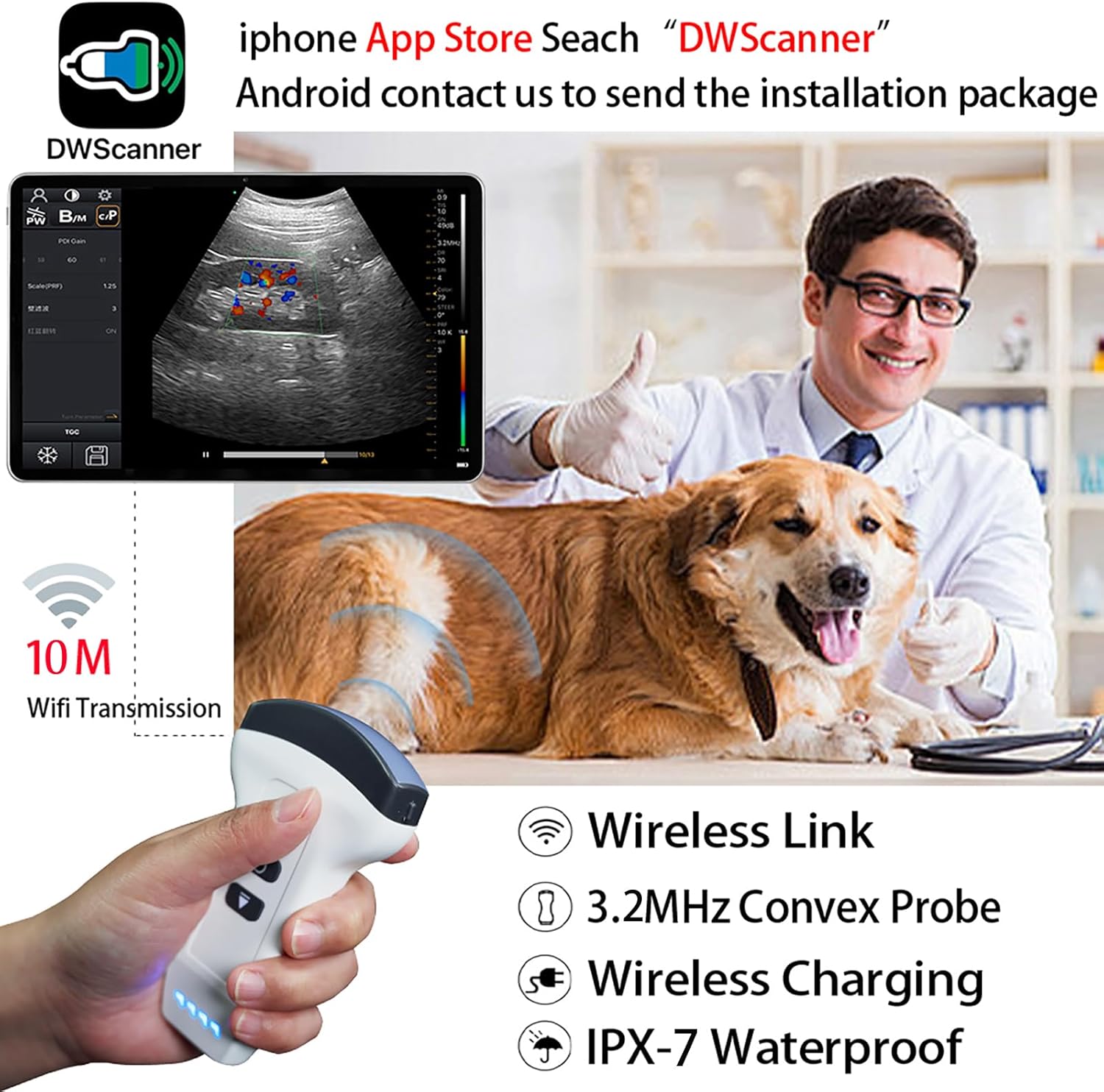 Wireless color Doppler veterinary ultrasonic diagnostic instrument, convex array probe, suitable for Dog, Cat, Pig, Sheep, Ect.