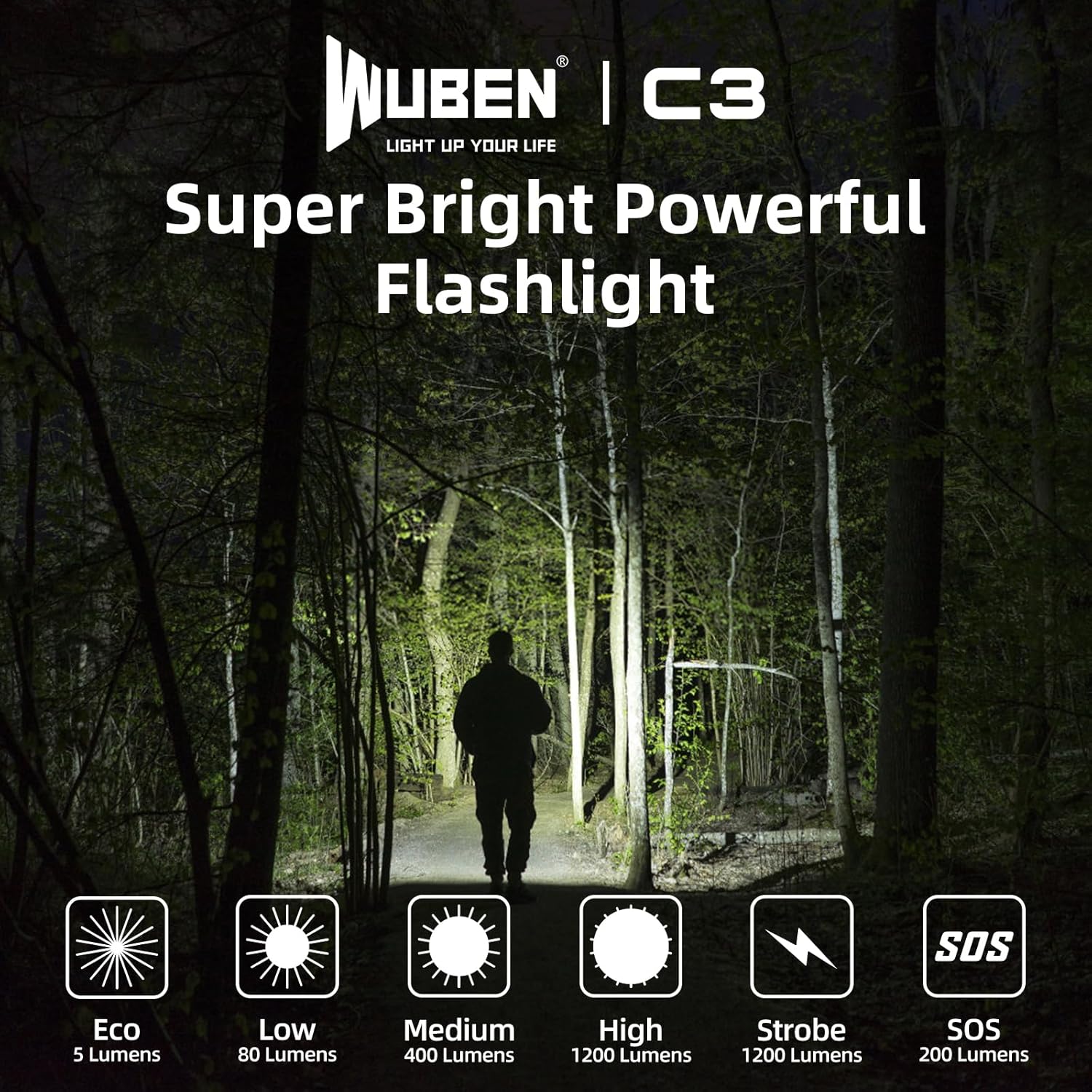 Be the first to review “WUBEN C3 Rechargeable Flashlight 1200 High Lumens Super Bright, LED Tactical Flashlights, Powered EDC Flash Light IP68 Waterproof, 6 Light Modes for Camping, Emergency, Outdoor, Rescue, Inspection”